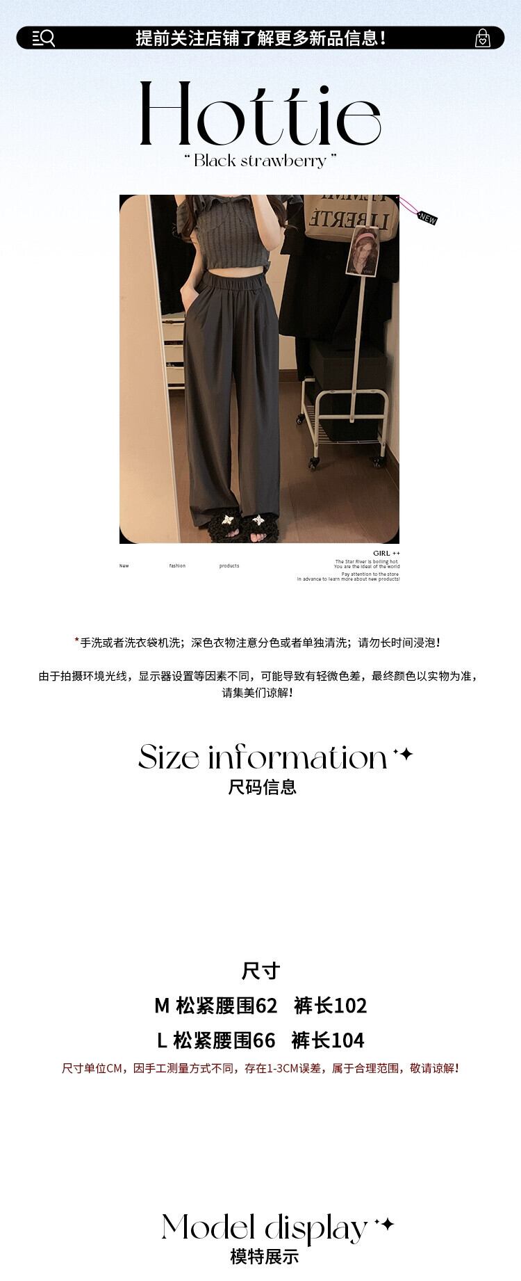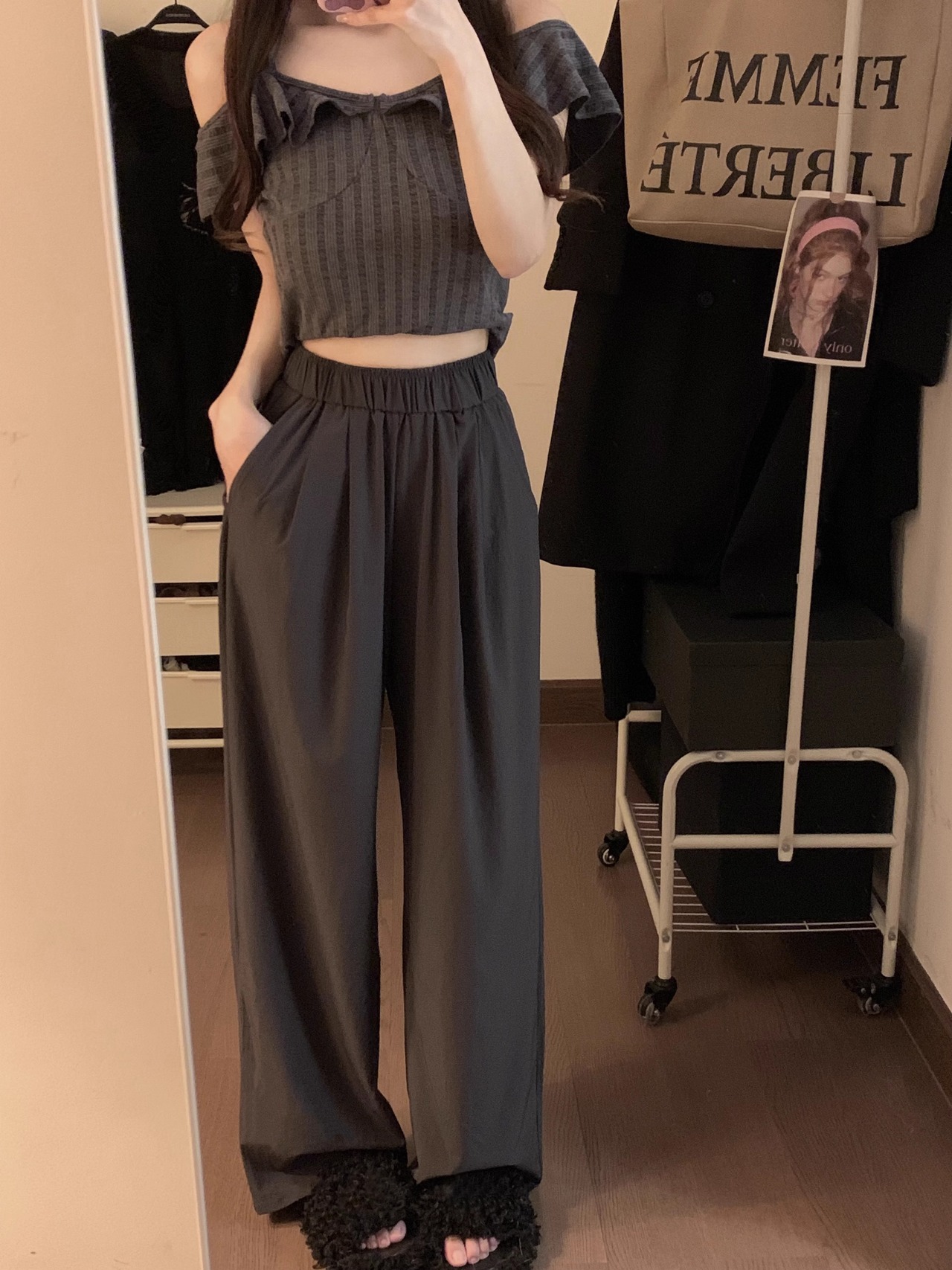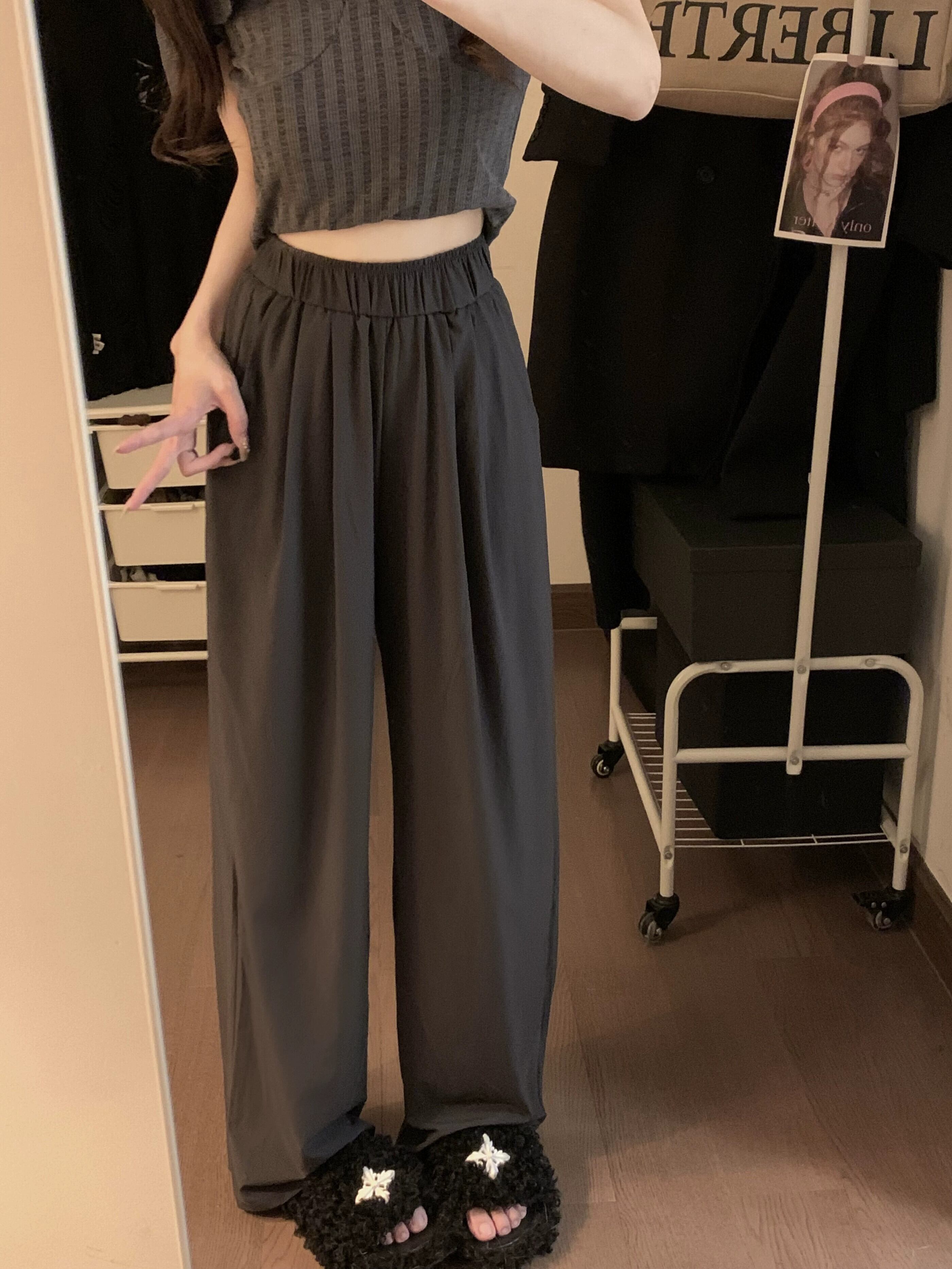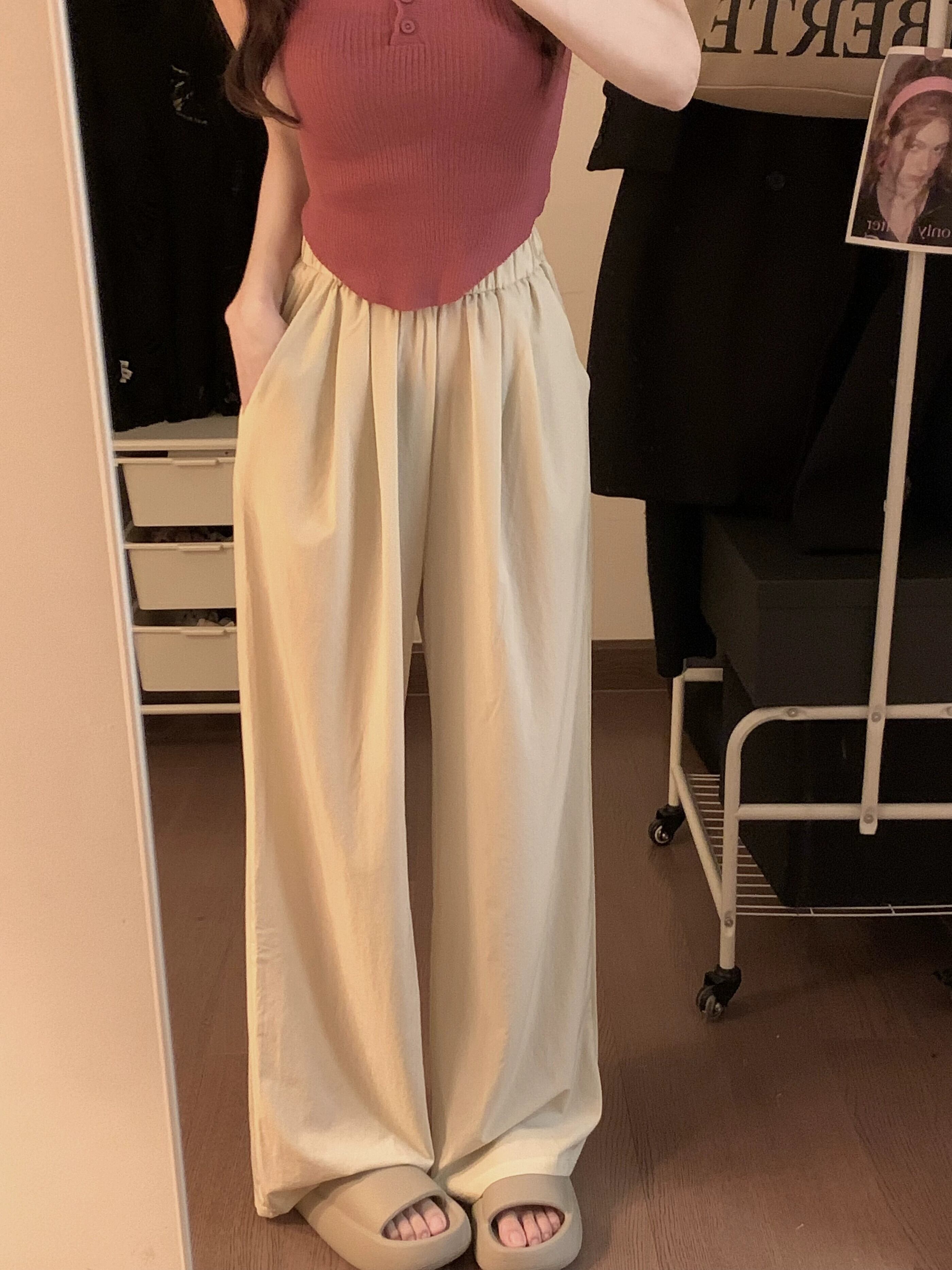 薄いストレートカジュアルパンツ女性の 2023 夏の新しいパンツ弾性ウエストドレープ緩い小さなワイドレッグパンツ エラスティック 伸縮 サマー 夏物 bstraw95787303776 | beaute25