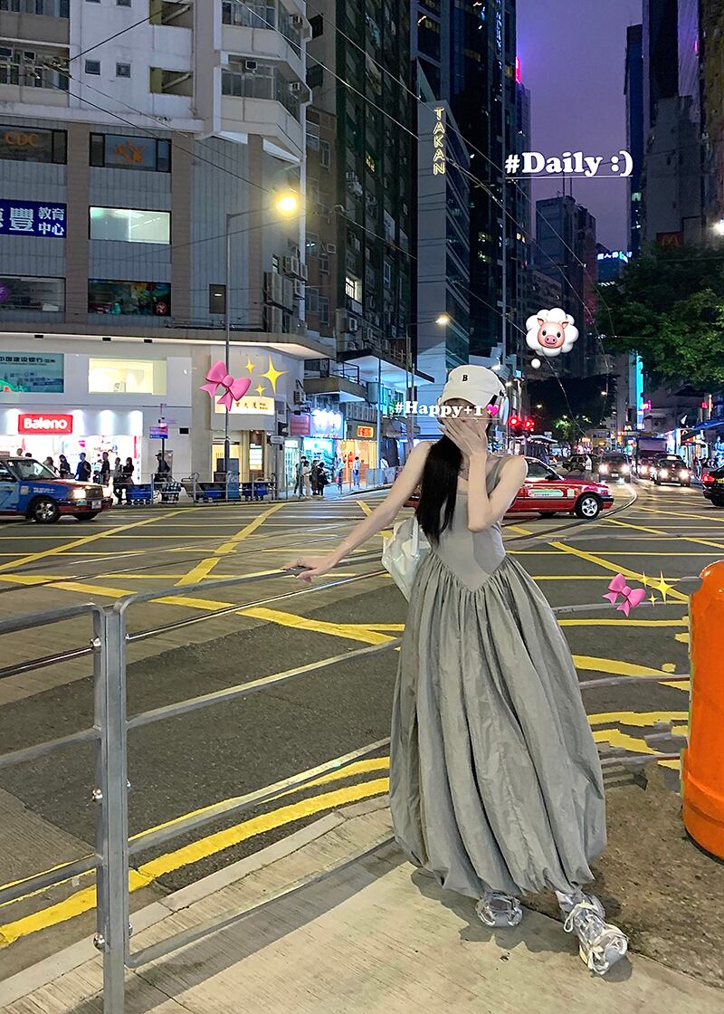 スポーツスタイルレトログレーサスペンダードレス女性の夏のスプライシングウエストオープンバック花のつぼみチュチュスカート気質ロングスカート サマー 夏物 パニエ ペチコート フラワーデザイン bstraw75985032382 | beaute25