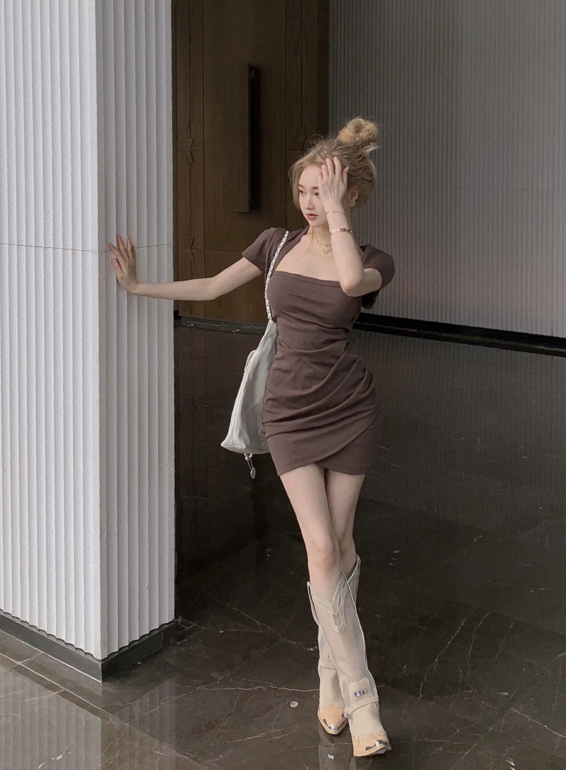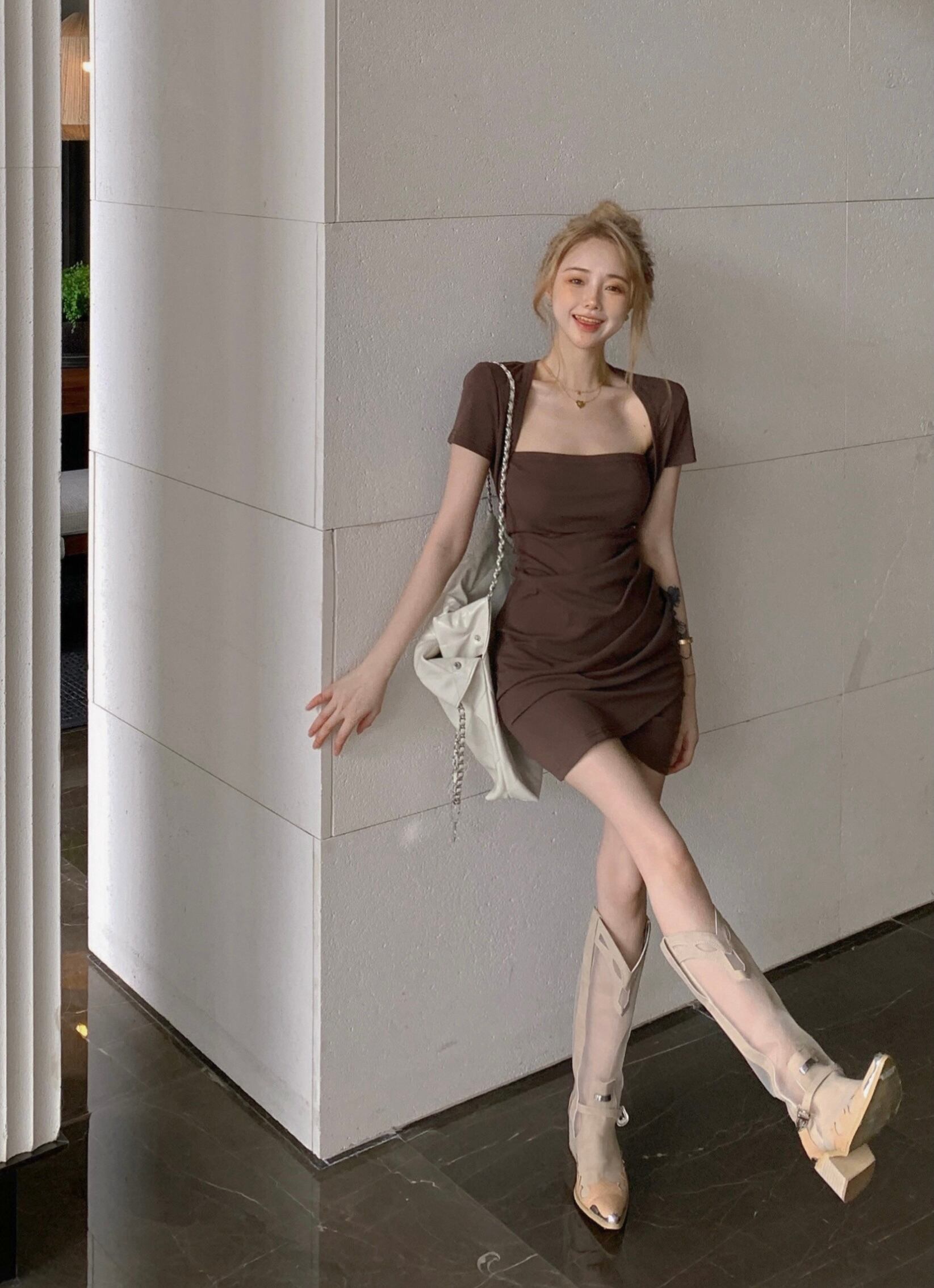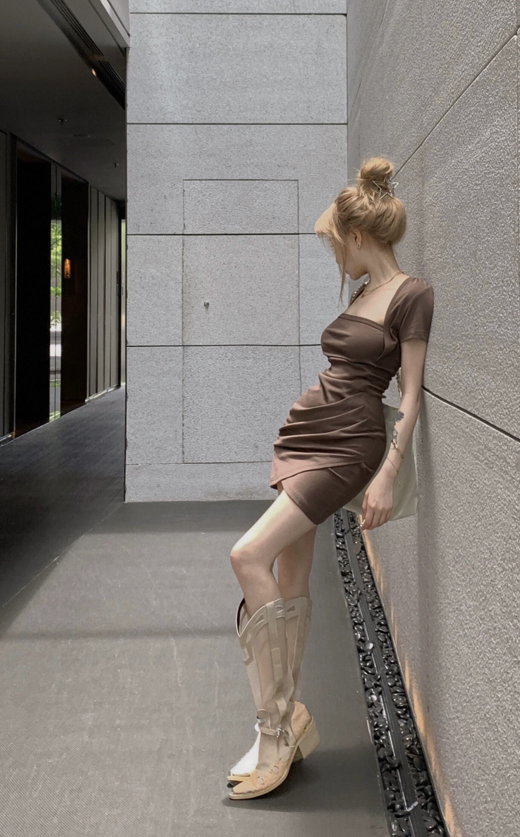 純粋な欲望スクエアカラー半袖ドレスの女性の夏の 2023 新しいスカートウエストスリムセクシーなセクシーなバッグヒップスカート サマー 夏物 スクウェア bstraw35687871412 | beaute25