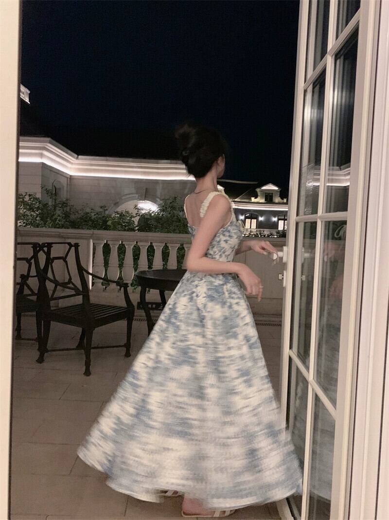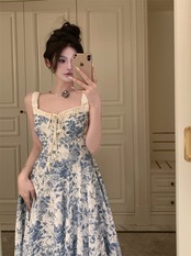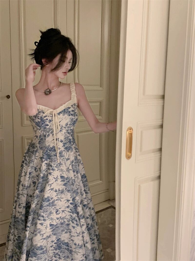 スイート スパイス ガール花柄サスペンダードレス女性の夏フレンチブルースカートウエストネクタイ気質 A ラインロングスカート 大人ガーリー スウィート キュート カジュアル サマー 夏物 Aライン bstraw80608302991 | beaute25