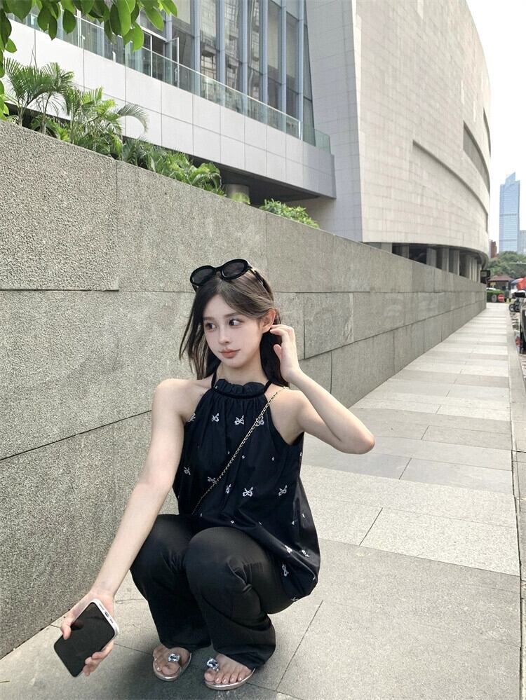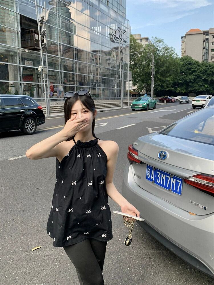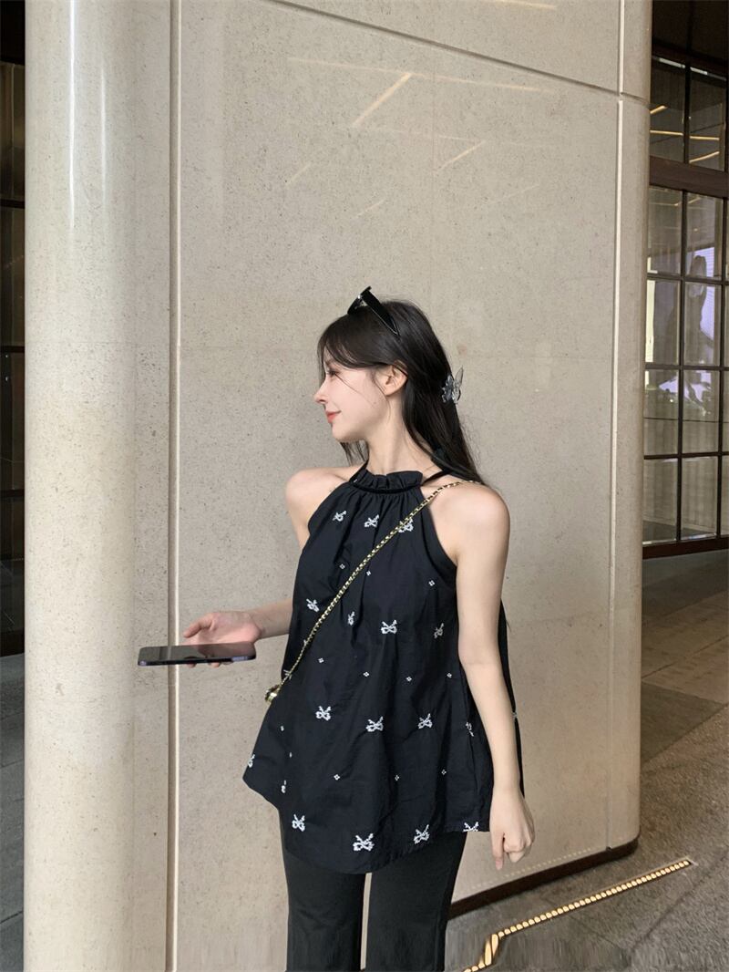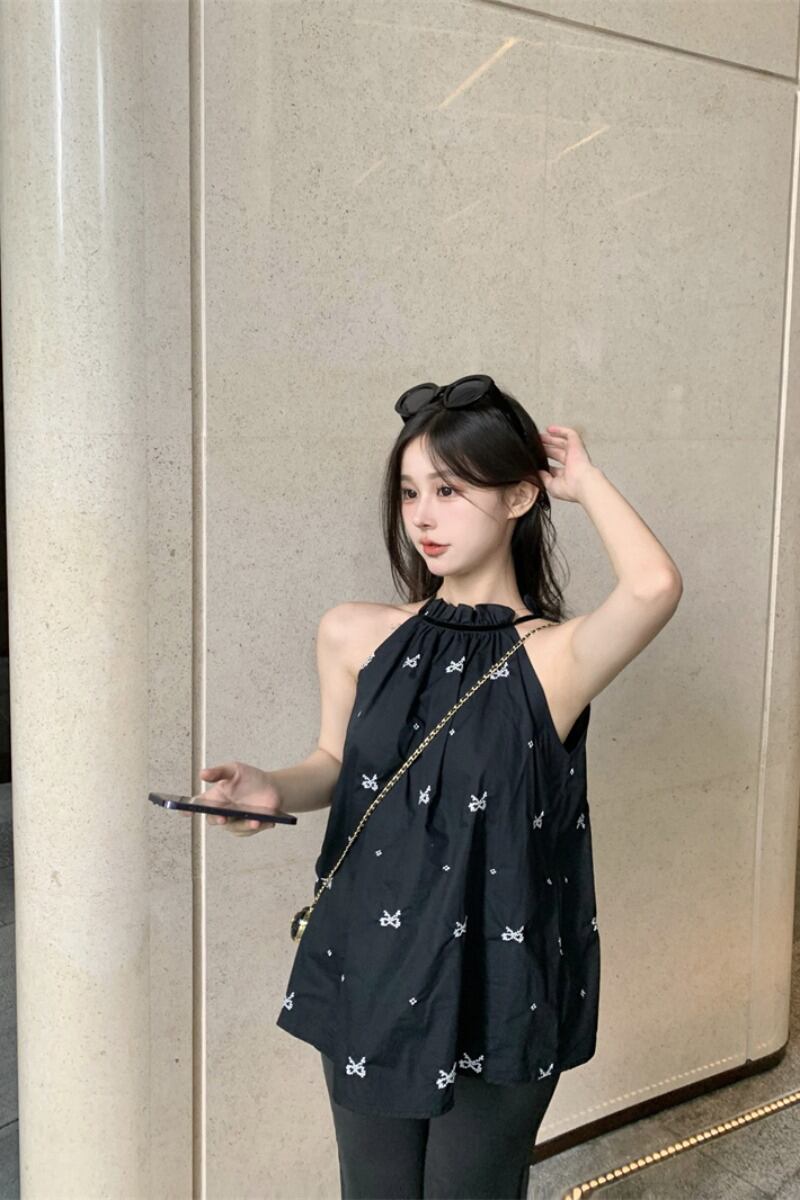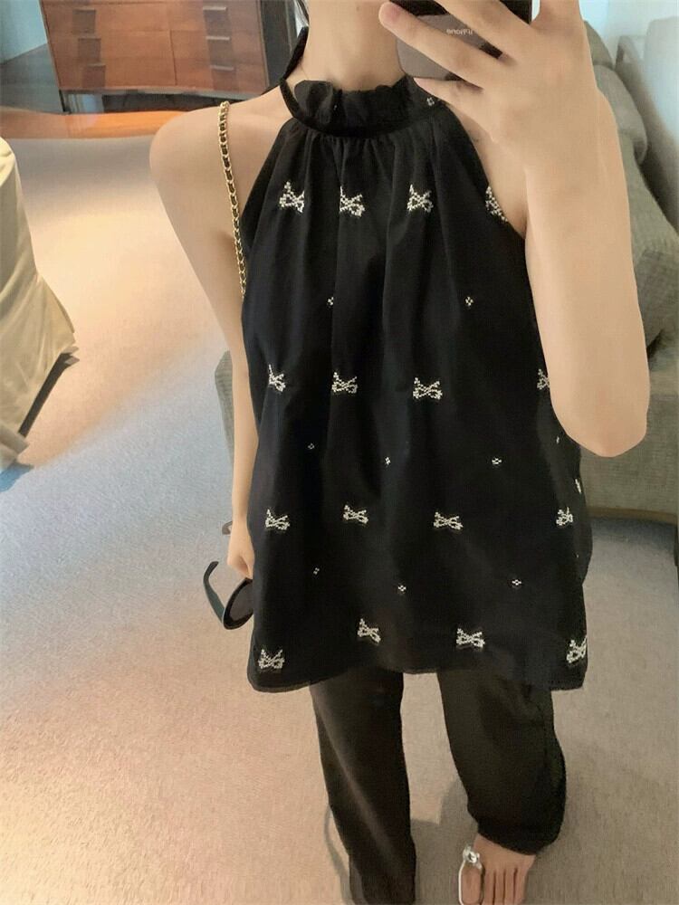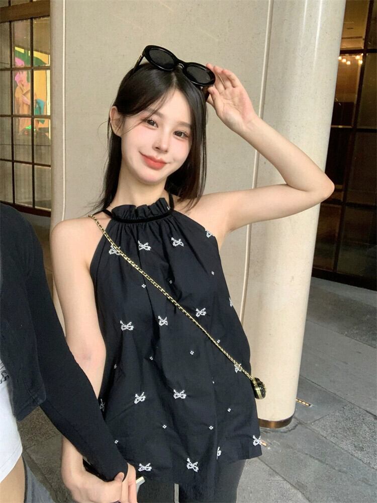 ブラック ホルターネック キャミソール 婦人服 夏 甘い ゆったり 重工業 ボウ感覚 ニッチ トップス アウター リボン 大人ガーリー スウィート キュート カジュアル サマー 夏物 bstraw28156319489 | beaute25