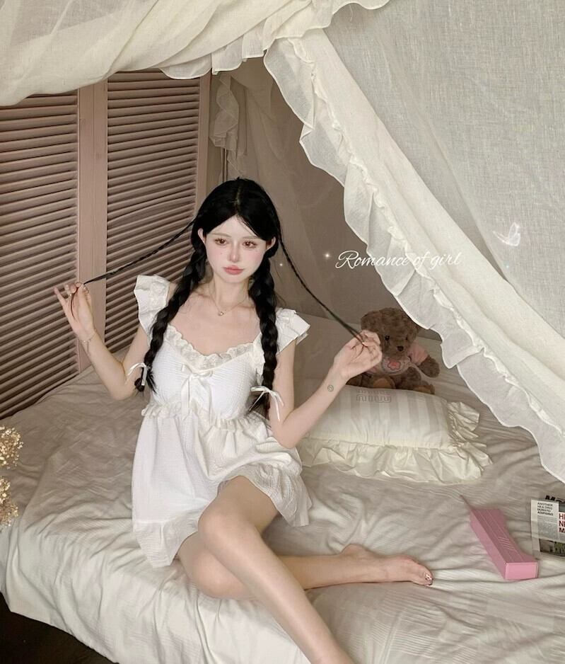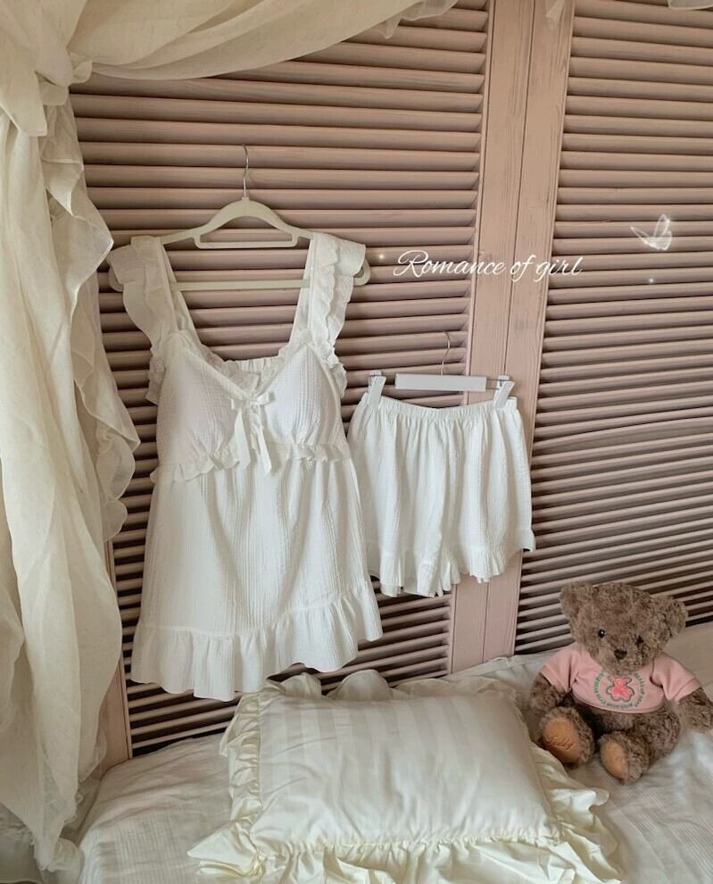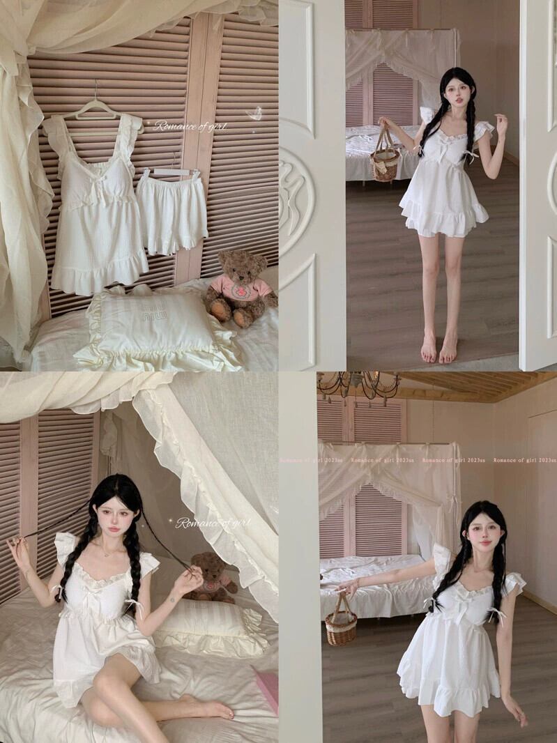甘い純粋な欲望の白いサスペンダー胸パッド付きパジャマレディース夏ホーム服パジャマパンツショーツ 2 点セット屋外で着用可能 ホワイト 大人ガーリー スウィート キュート カジュアル サマー 夏物 ブルマー ピュア bstraw16098955392 | beaute25
