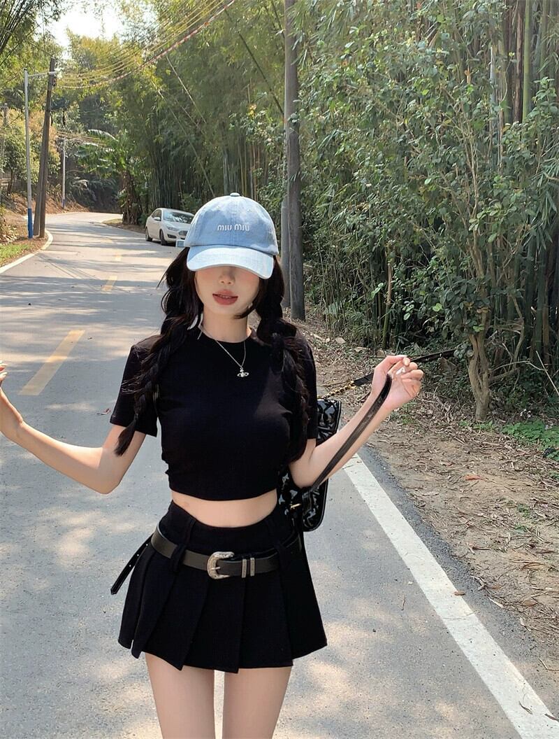 色:白いTシャツ,黒いTシャツ,ベルト付きホワイトスカート,ベルト付きブラックスカート
