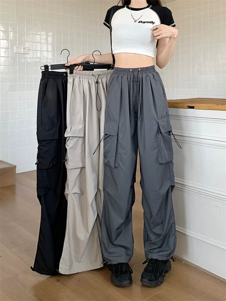 アメリカンスタイルの速乾性ワークウェアカジュアルパンツレディース夏グレー伸縮性ウエスト巾着薄型セクションワイドレッグパンツスポーツパンツ エラスティック サマー 夏物 bstraw40634718043 | beaute25