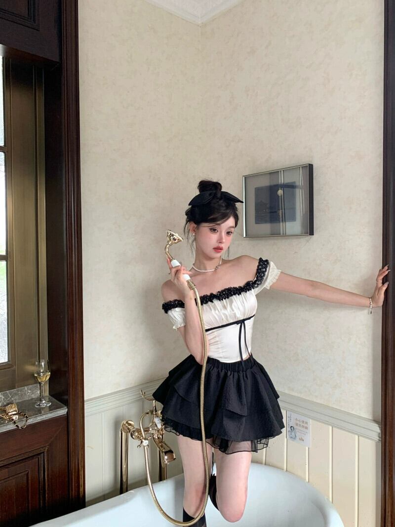 バレエ スタイル ツーピース 純粋な欲望 ワンショルダー シャツ トップ レディース サマー スカート ブラック チュチュ スカート スカート スーツ 夏物 パニエ ペチコート ピュア bstraw68513524823 | beaute25