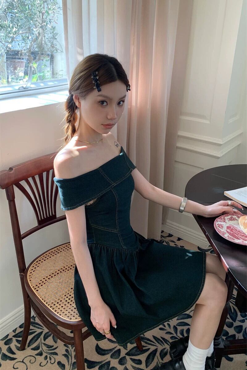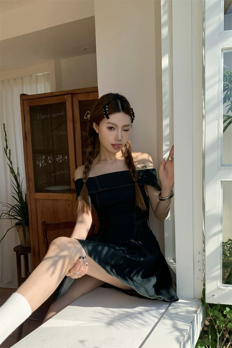 甘いクールなワンショルダーデニムドレス女性の夏の鎖骨スカートスーパーウエストウエストセクシーなバッグヒップスカート 大人ガーリー スウィート キュート カジュアル サマー 夏物 bstraw14500544043 | beaute25