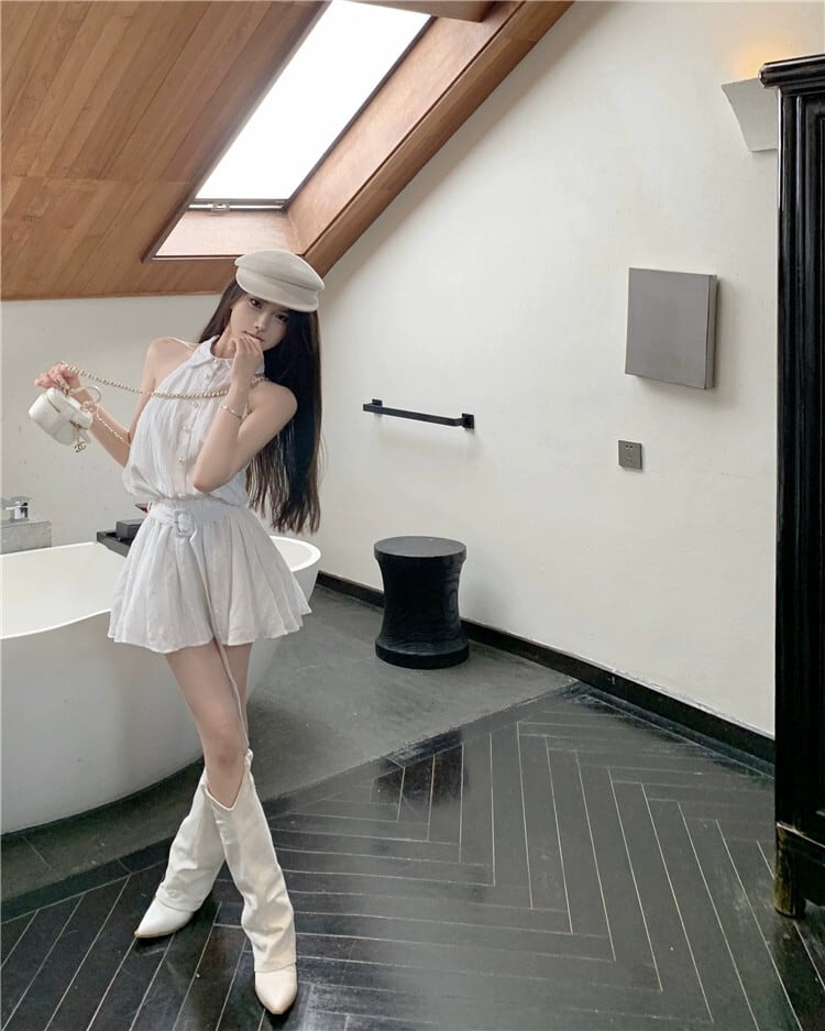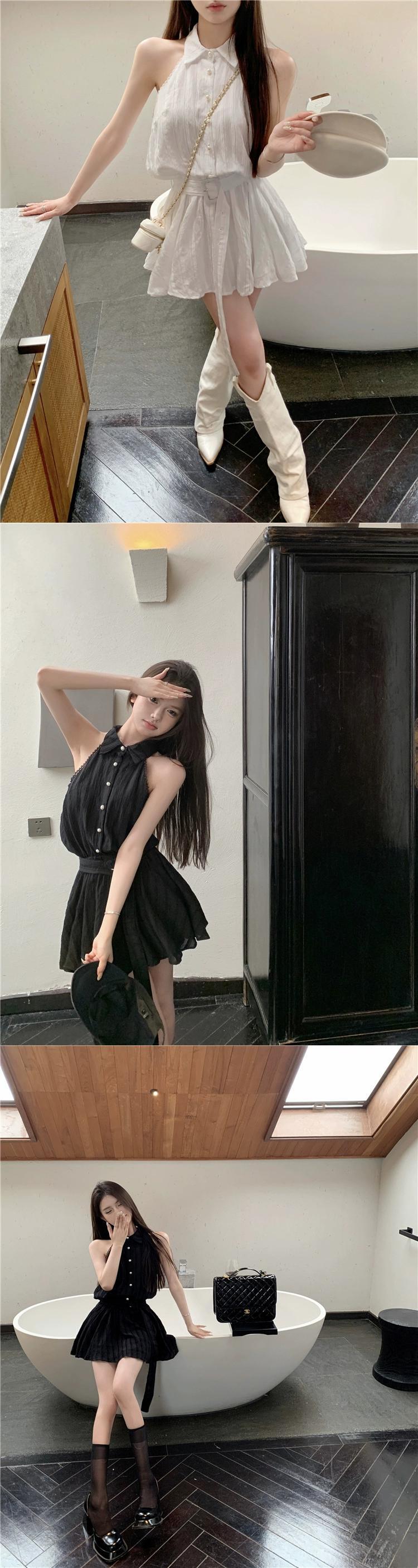 白いポロカラーベストシャツドレス女性の夏の甘い気質ウエストセクシーなスカートふわふわスカート ホワイト 大人ガーリー スウィート キュート カジュアル サマー 夏物 bstraw21065509917 | beaute25