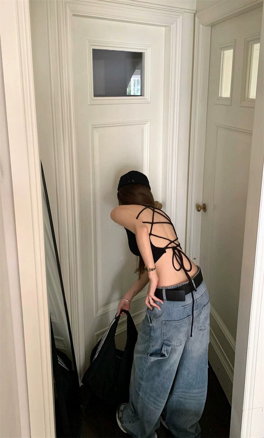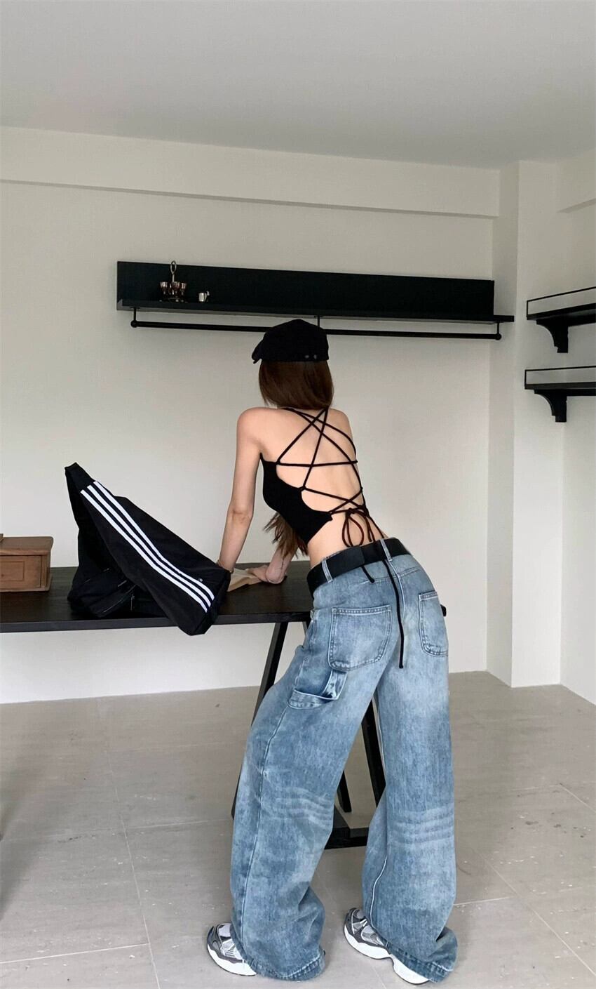 色:ブラックサスペンダー,ミルクティースリング,ジーンズ