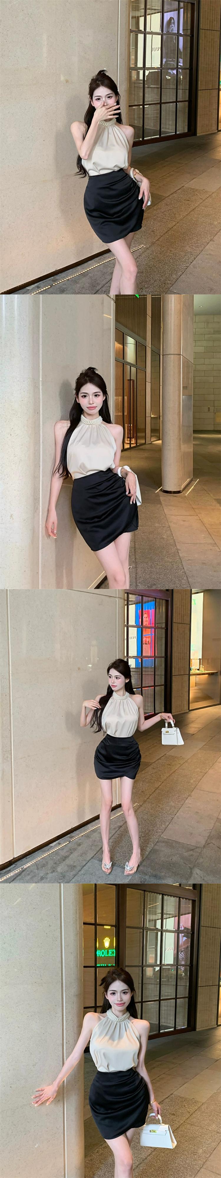色:ブルートップ,ブラックトップ,アプリコットトップ,アプリコットスカート,黒スカート