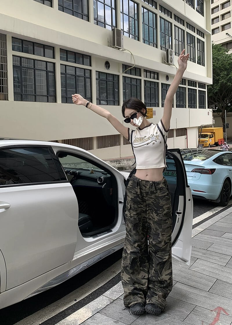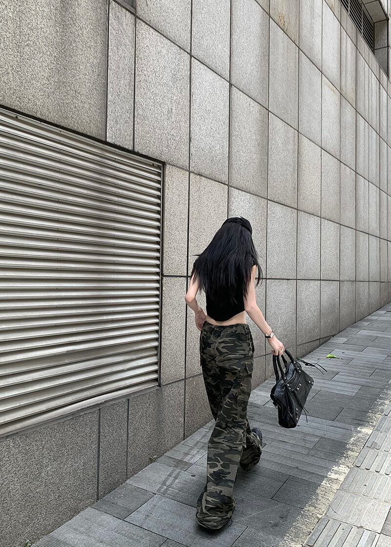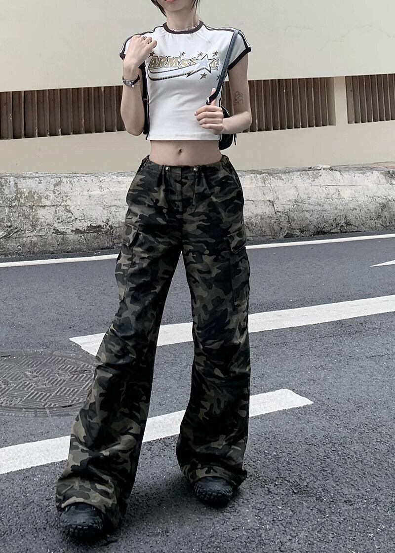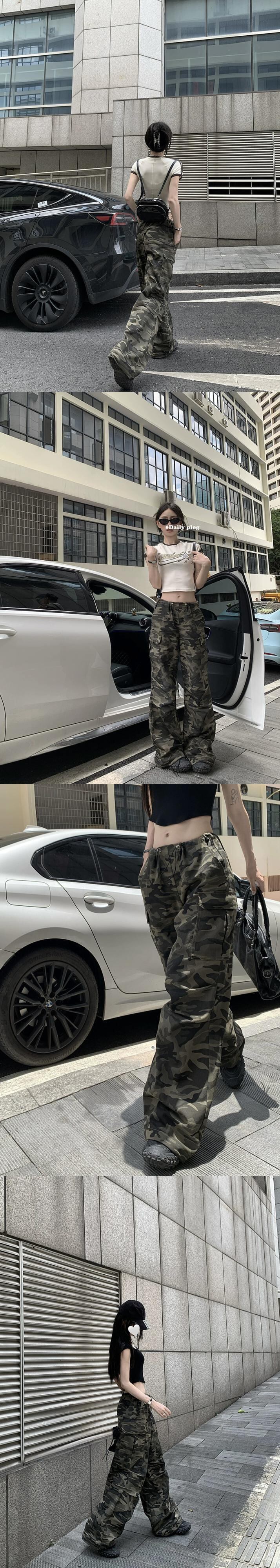 アメリカンレトロ迷彩ツーリングカジュアルパンツ女性の夏の巾着ポケットハイウエストルーズストレートワイドレッグパンツズボン ハイウェスト サマー 夏物 ワイドパンツ bstraw18616301970 | beaute25