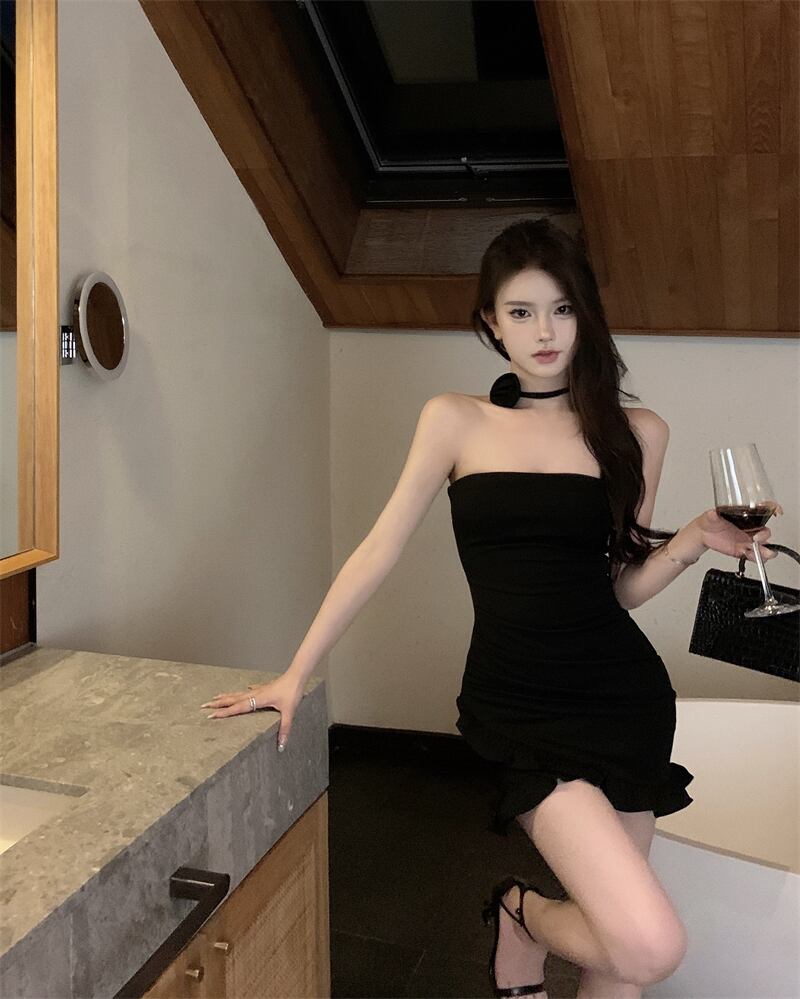 ワンショルダーチューブトップドレス女性の夏の気質花純粋な欲望ウエストフリルスカートセクシーなバッグヒップスカート サマー 夏物 ピュア フラワーデザイン bstraw63282385229 | beaute25