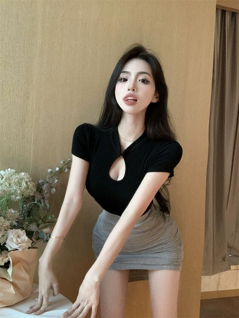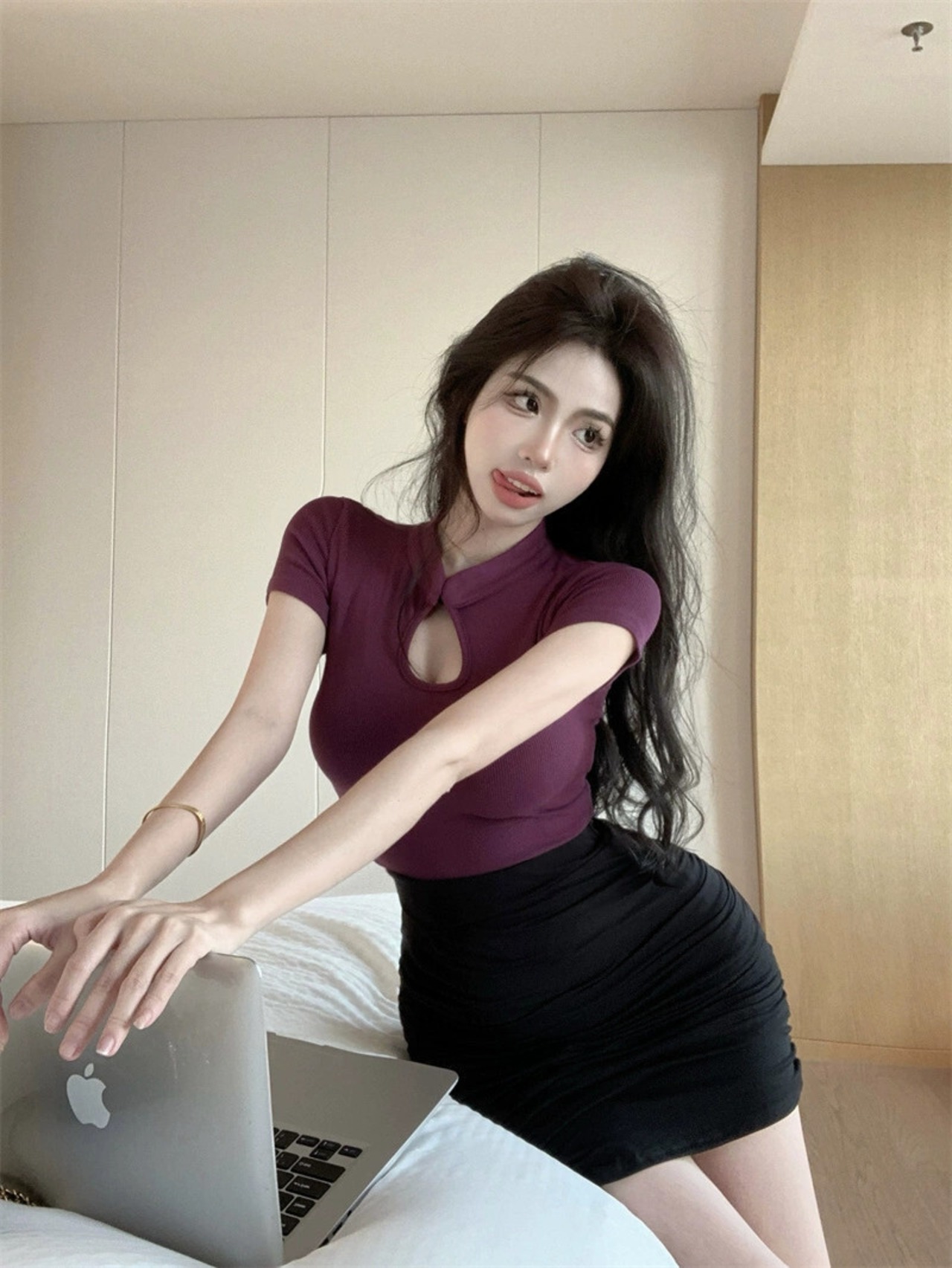 純粋な欲望スタイルのセクシーな紫の中空ショート Tシャツ女性のデザインセンスニッチ夏タイトな甘い薄いトップ 大人ガーリー スウィート キュート カジュアル サマー 夏物 パープル bstraw51219665198 | beaute25
