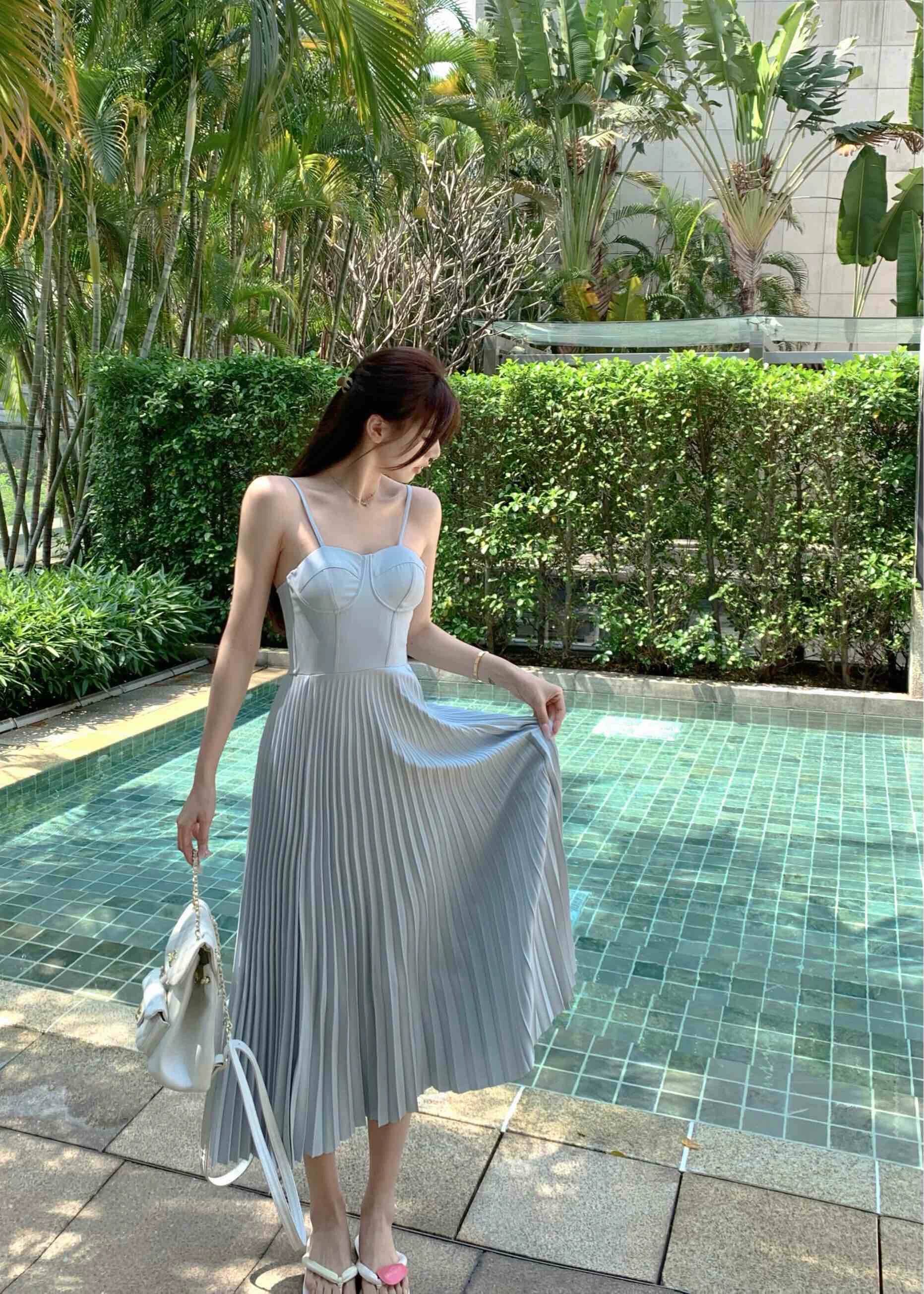 ホットセクシーなフィッシュボーンサスペンダードレス女性の夏の純粋な欲望スタイルハイエンドスカートノースリーブプリーツスカートミッドレングススカート サマー 夏物 ピュア bstraw69782721602 | beaute25
