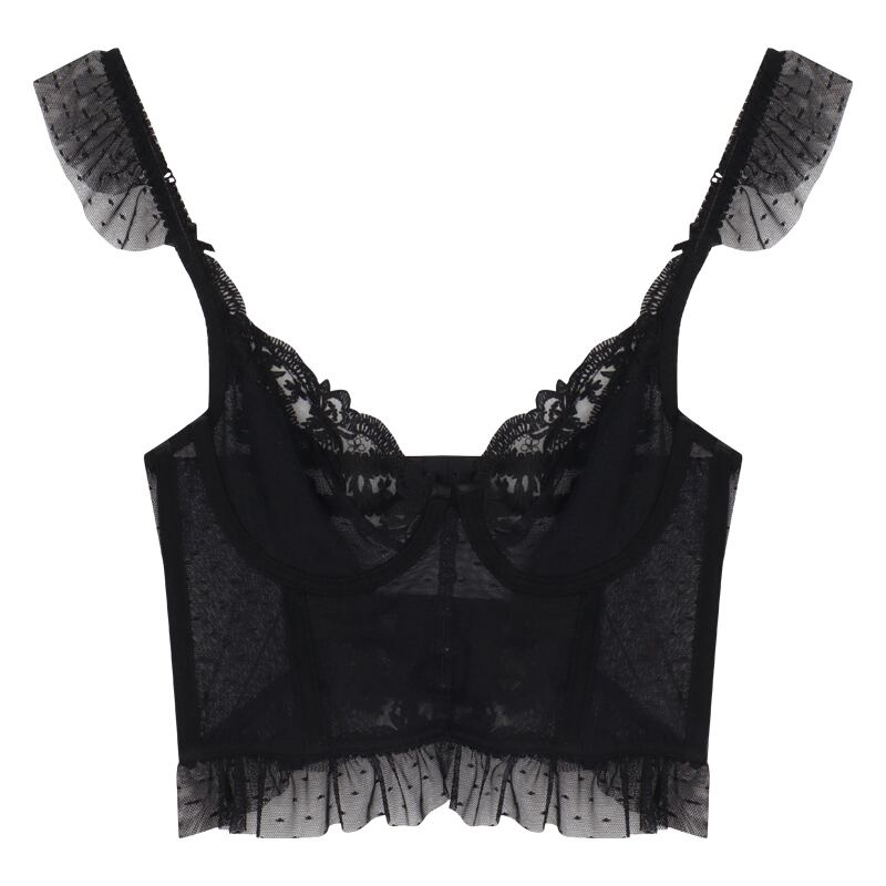 黒のフィッシュボーン レース キャミソール女性の夏 V ネック ブラジャー下着セクシーなショート トップ アウターウェア ブラック サマー 夏物 Vネック bstraw84524796995 | beaute25