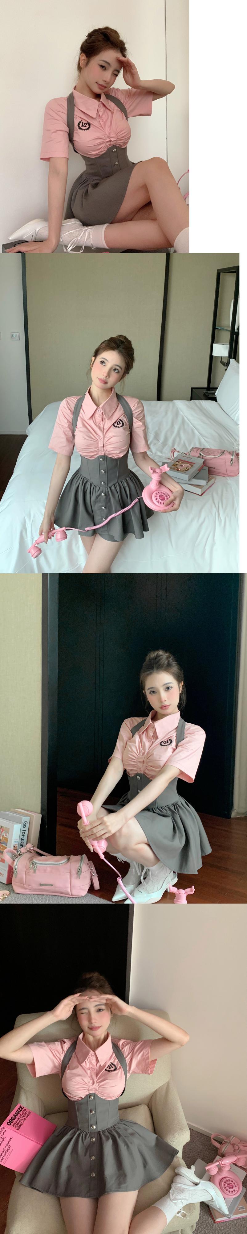 ese カレッジスタイル jk ユニムスーツレディース夏半袖シャツトップ甘辛スタイルサスペンダースカートショーツ 3 点セット 大人ガーリー スウィート キュート カジュアル サマー 夏物 ブルマー bstraw72321253928 | beaute25