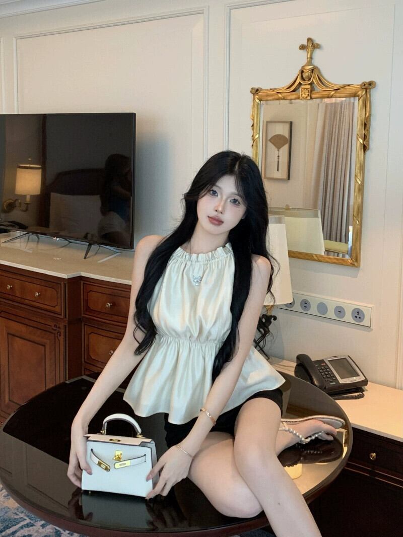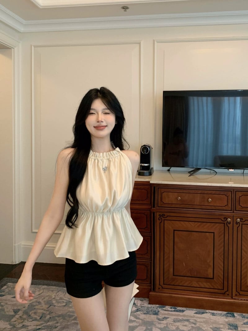 Pure Desire ホルターネック キャミソール レディース 夏 甘い ホット ガール 美しい ノースリーブ フリル - ショート トップ アウター 大人ガーリー スウィート キュート カジュアル サマー 夏物 bstraw12779976473 | beaute25