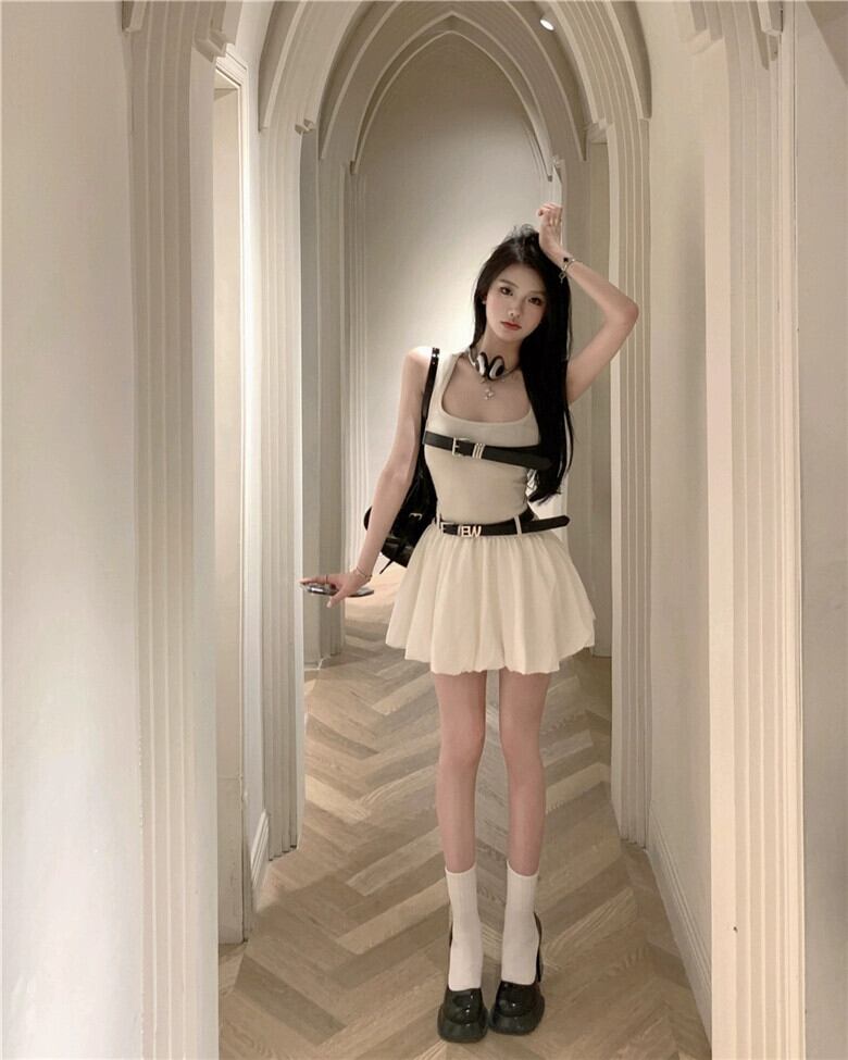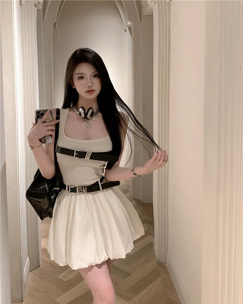 甘いクールホットガールベストドレス女性の夏のレトロ香港スタイルスクエアネックスカートウエスト A ラインふくらんスカート 大人ガーリー スウィート キュート カジュアル サマー 夏物 Aライン スクウェア bstraw58529497040 | beaute25