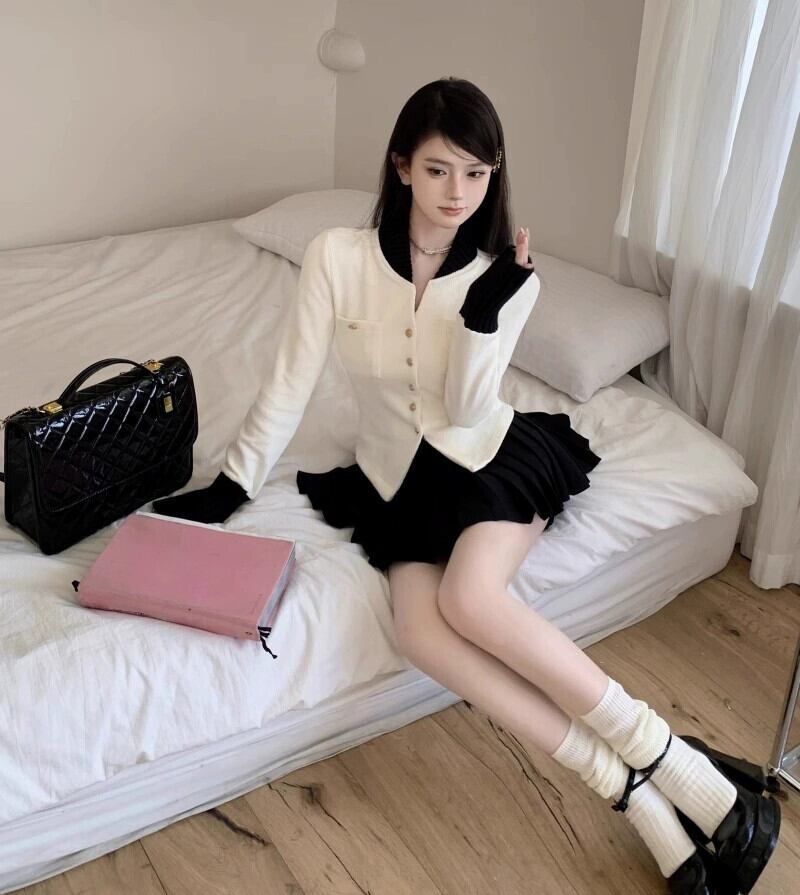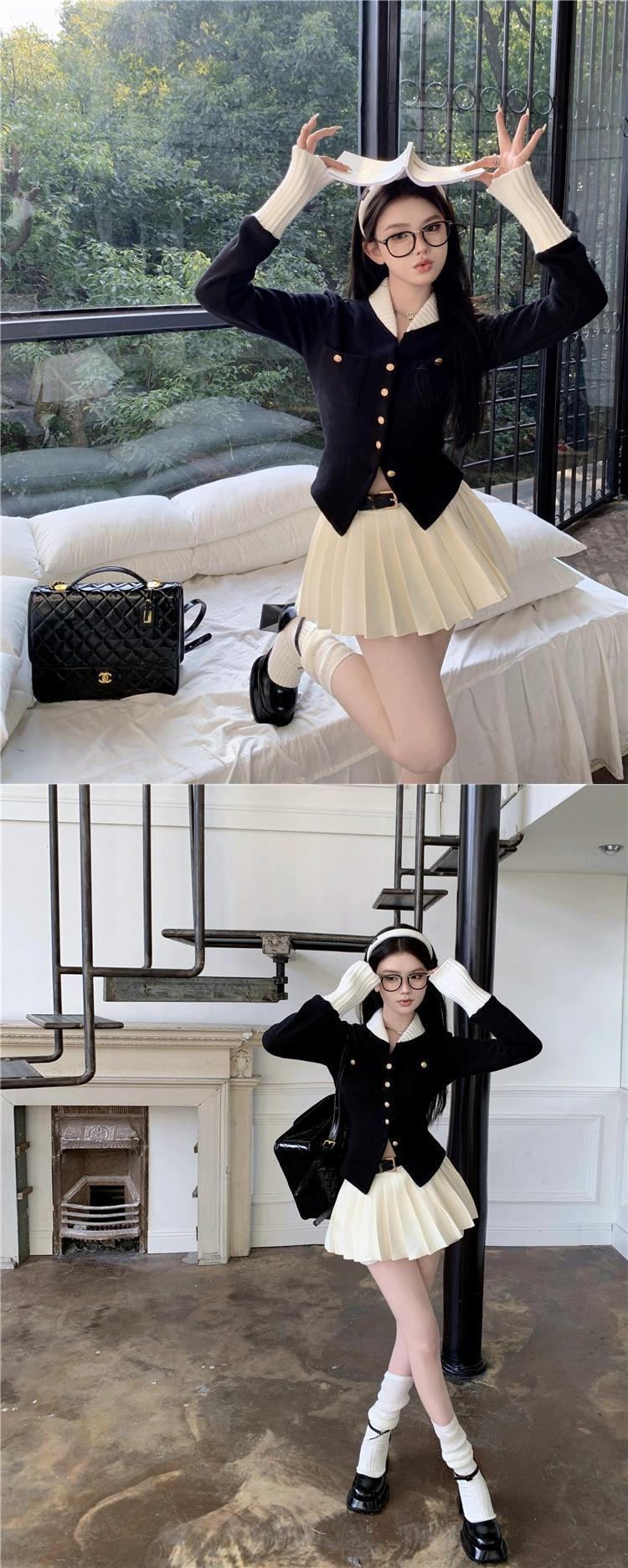 金持ち娘 スーツ レディース 秋 コントラストカラー スリム ニット カーディガン ジャケット JK プリーツ スカート 3点セット オータム 秋物 bstraw27745363613 | beaute25