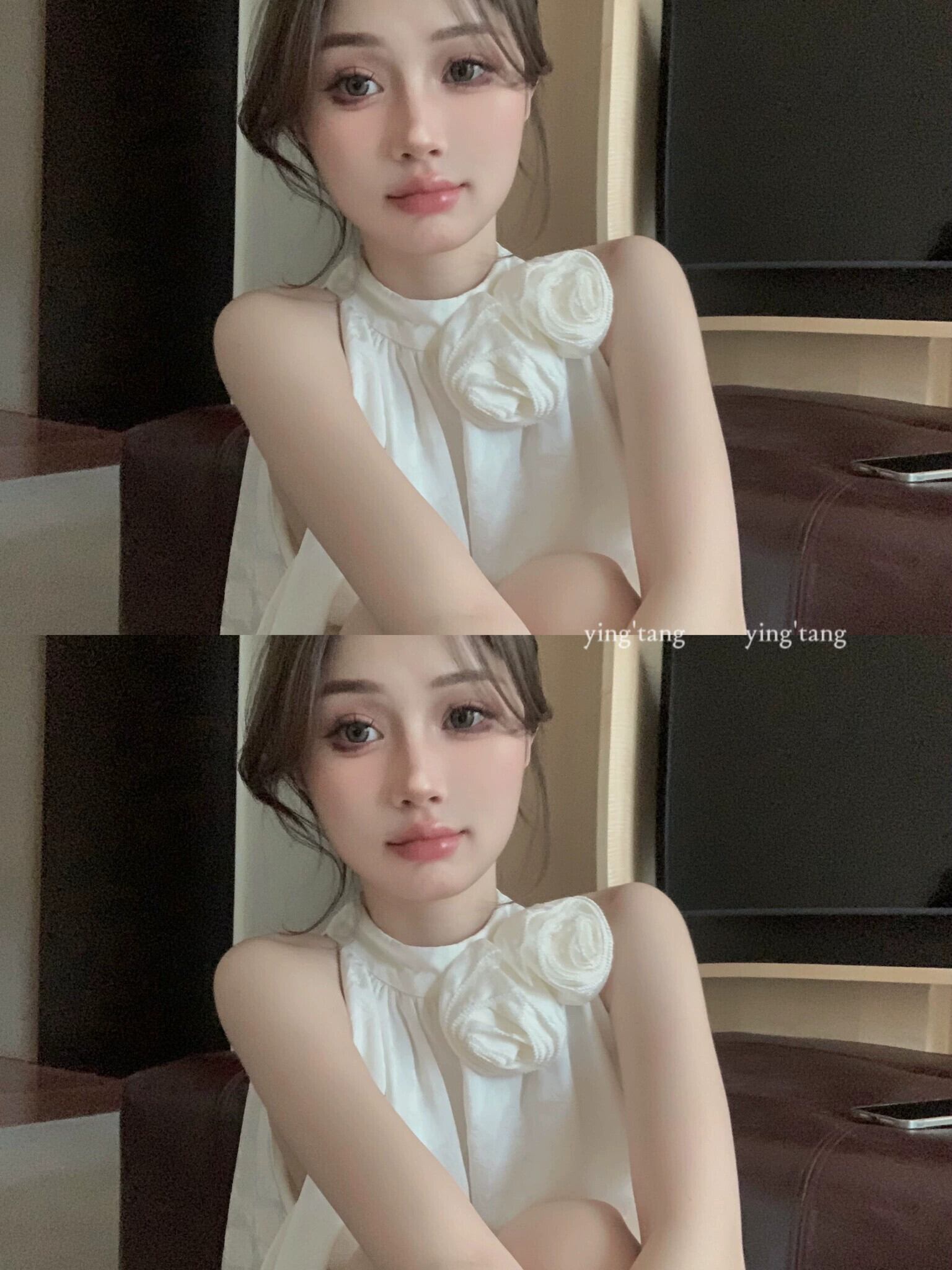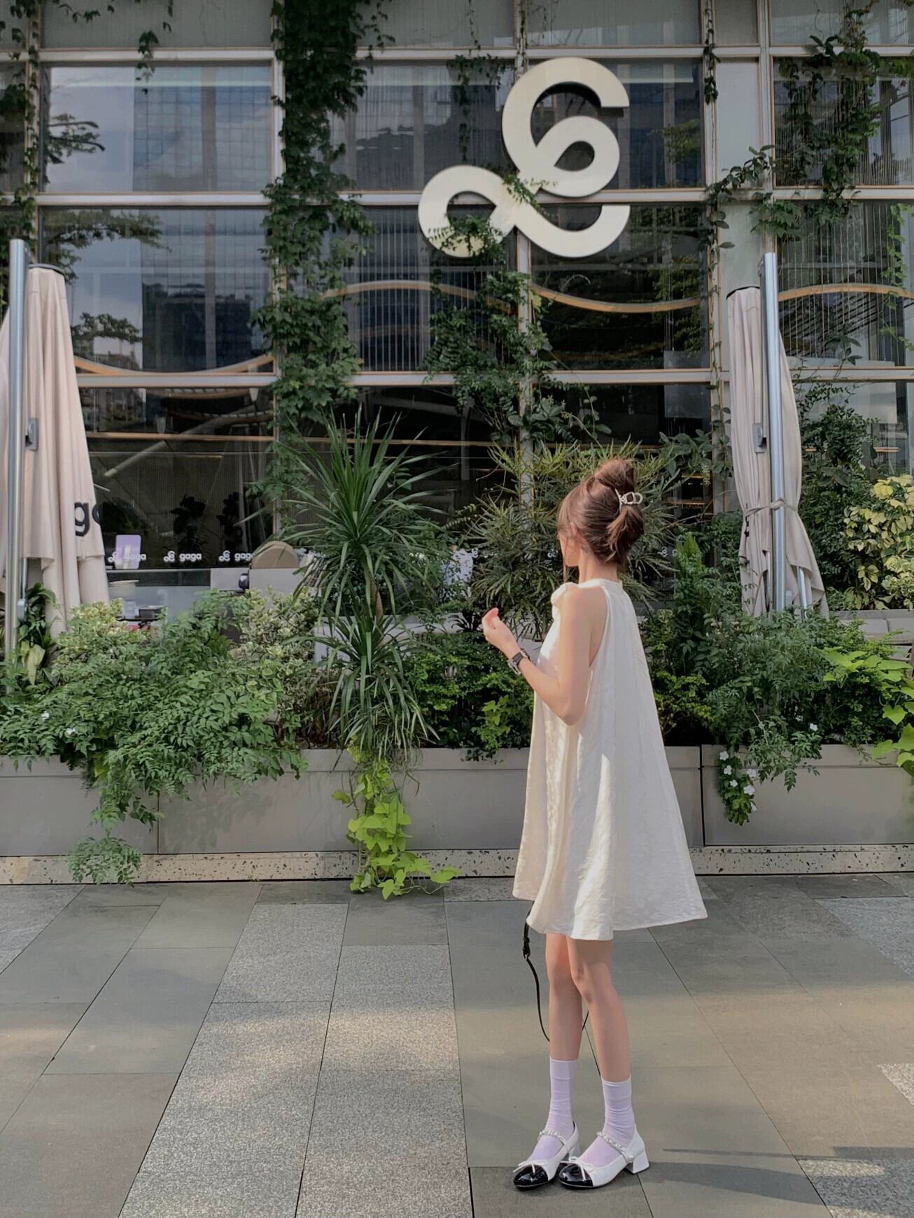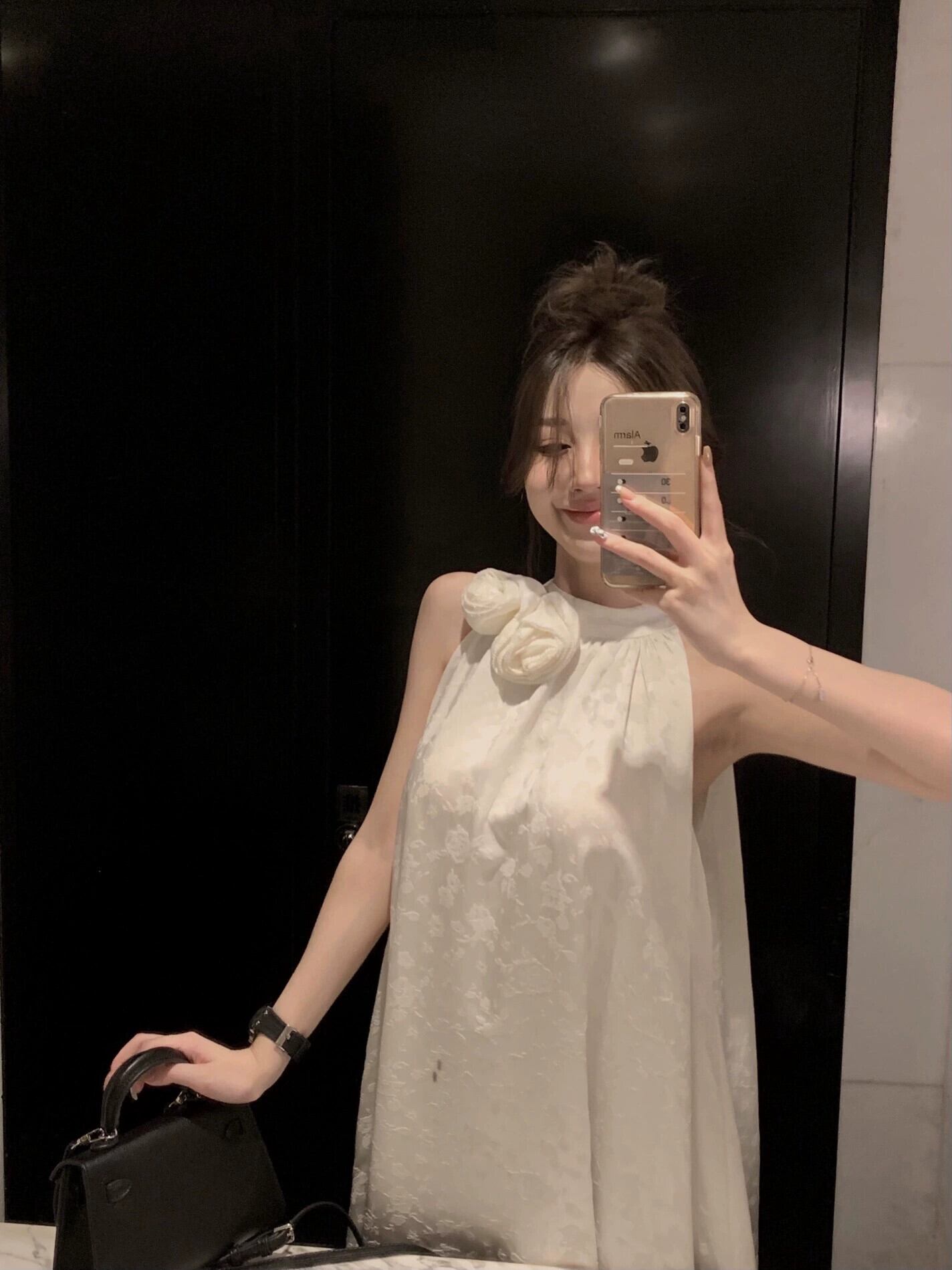 社交家フラワーホルターネックドレス女性夏白ノースリーブルーズショルダースカートフレンチニッチスカート ホワイト サマー 夏物 フラワーデザイン bstraw48085690180 | beaute25