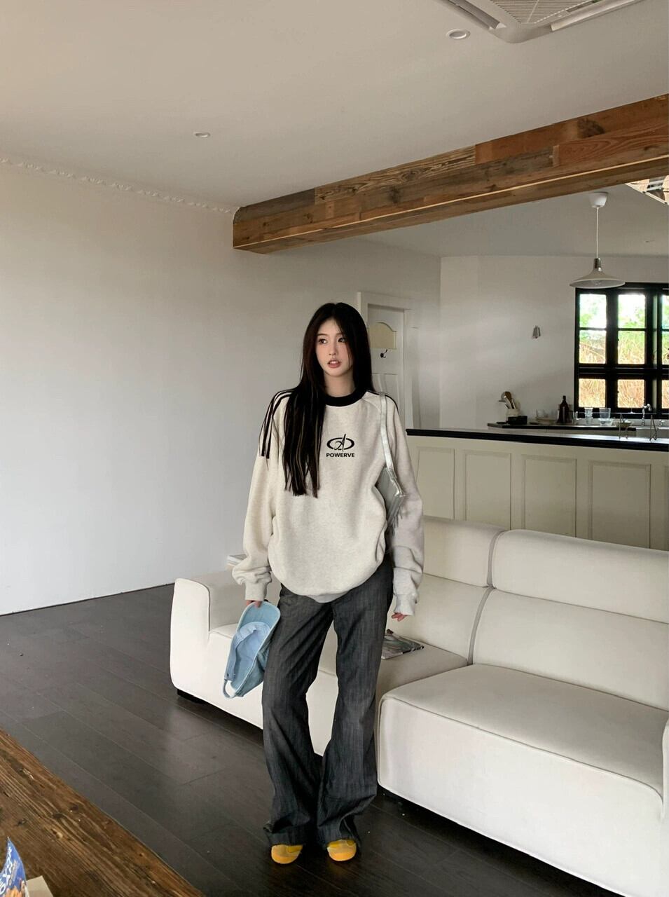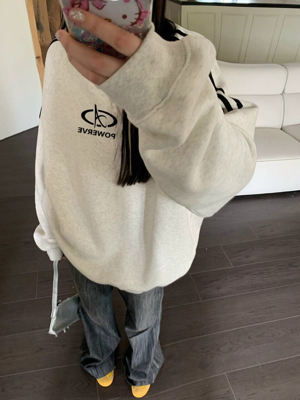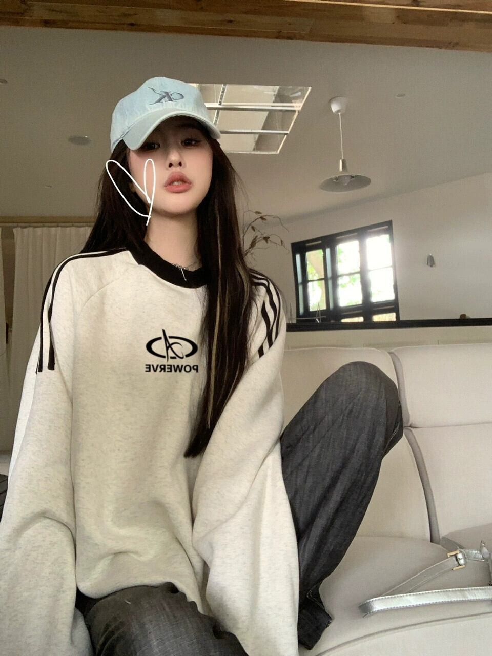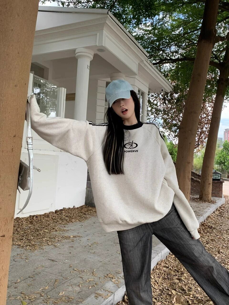 エドレトロコントラストカラーラウンドネックスウェットシャツレディース秋ルーズアウタープリントミッドレングス長袖プルオーバートップ ロング オータム 秋物 Oネック bstraw85203282968 | beaute25
