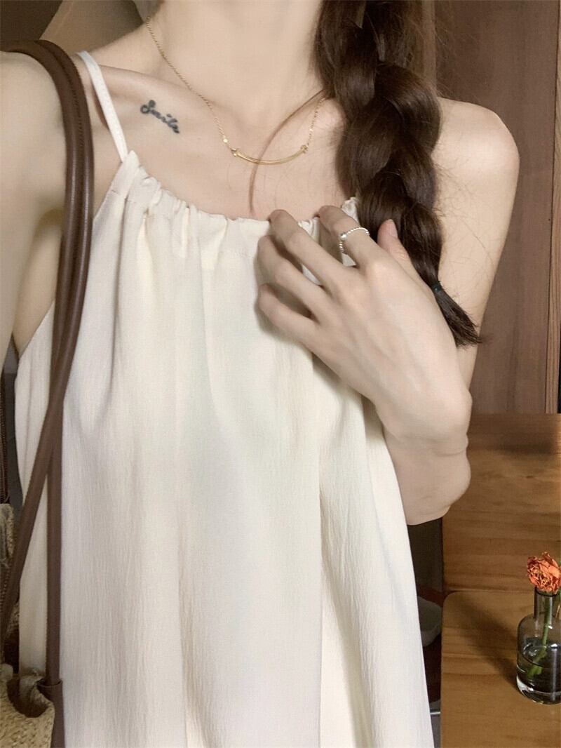 フレンチサスペンダードレス妖精夏甘い少し新鮮な白いスカート海辺のaラインルーズノースリーブロングスカート ホワイト 大人ガーリー スウィート キュート カジュアル サマー 夏物 bstraw60249346309 | beaute25
