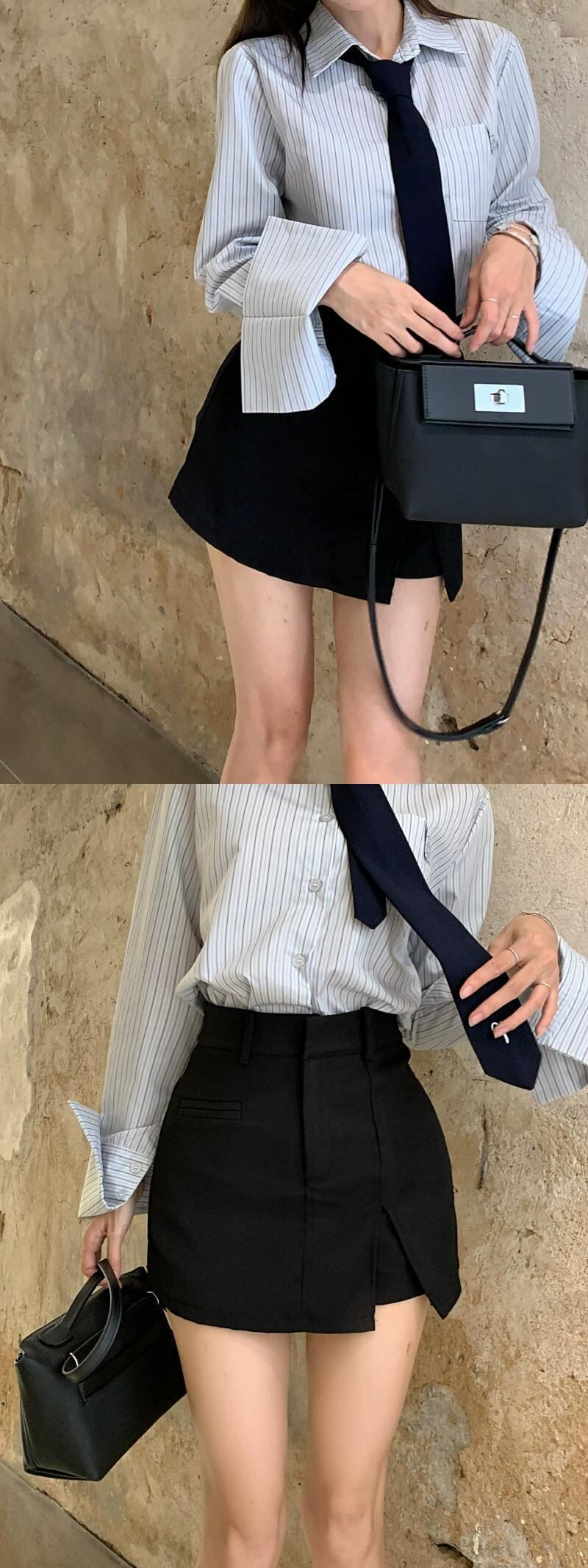 スタイルスーツストライプ長袖シャツトップ女性秋黒ヒップカバーキュロットショートスカートスカートツーピースセット ロング ブラック オータム 秋物 bstraw80612872324 | beaute25