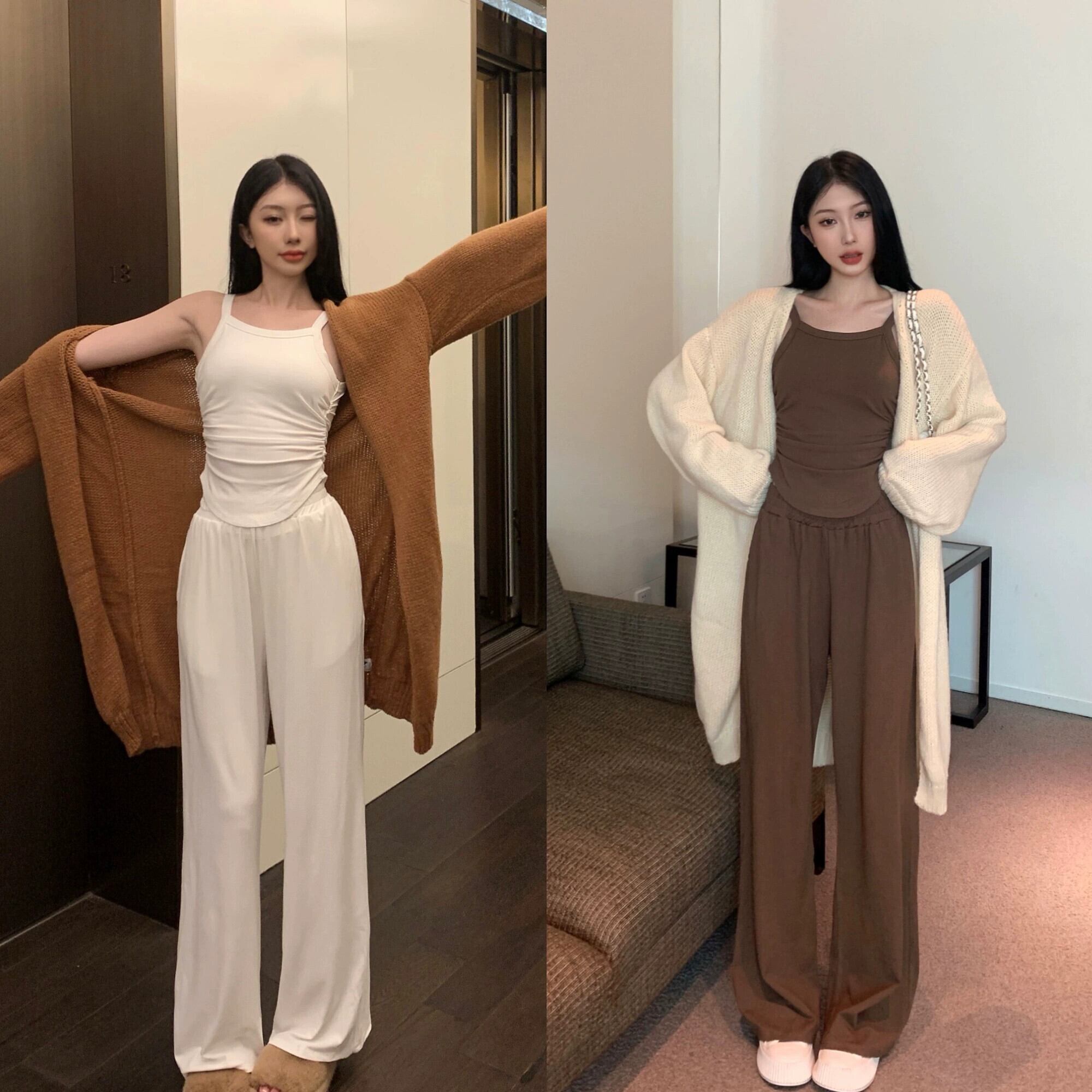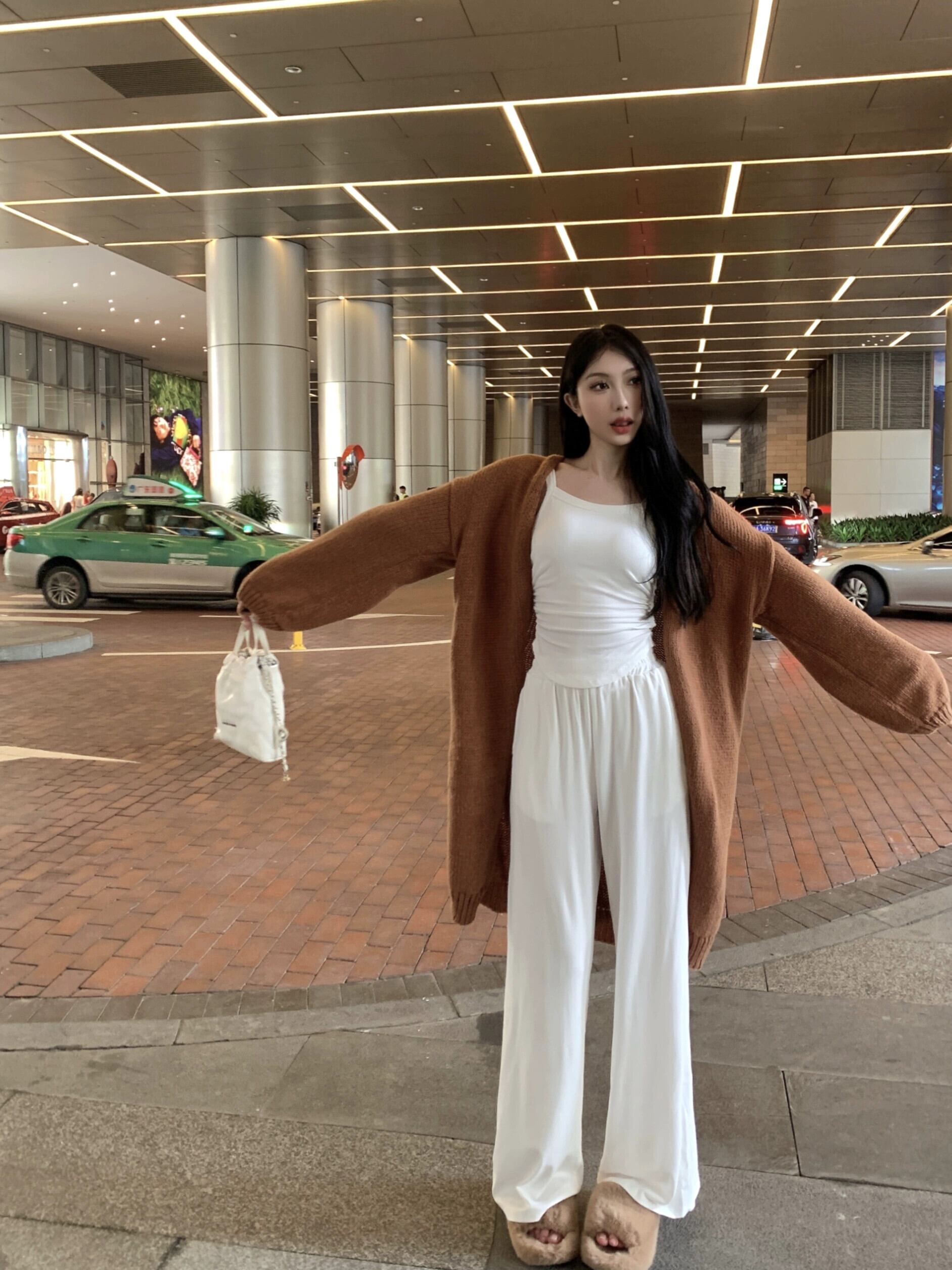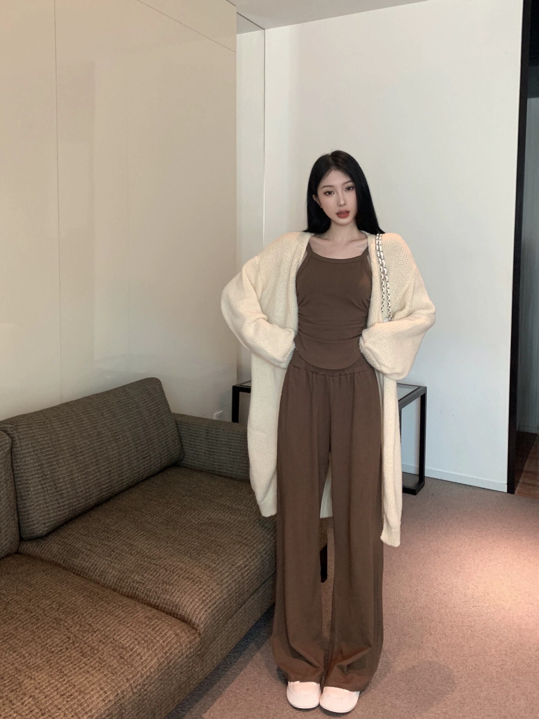色:白いツーピース,コーヒーカラーツーピーススーツ,アプリコットカーディガン,コーヒー色のカーディガン