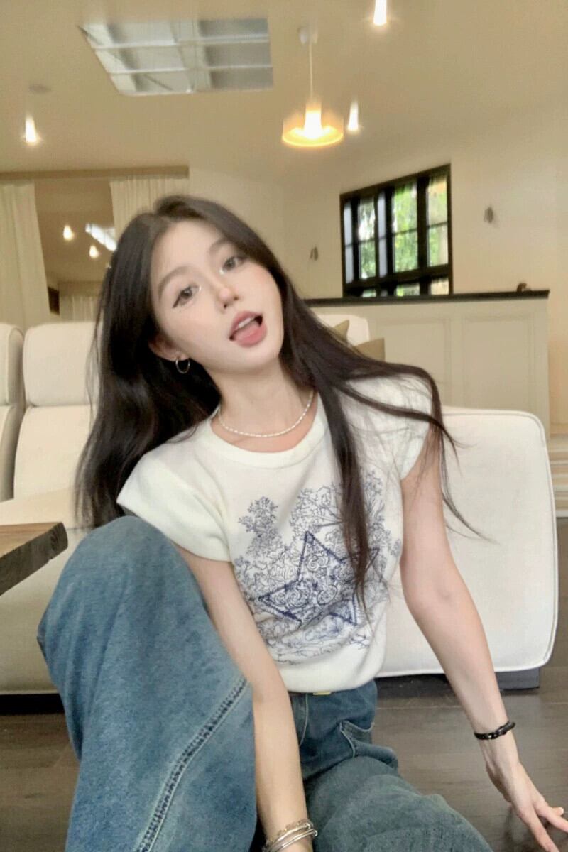 リトル ホット ガール ヘビー ジャカード ニット Tシャツ レディース 夏 スリム ショート シック ノースリーブ チョッキ トップ サマー 夏物 bstraw96371307484 | beaute25