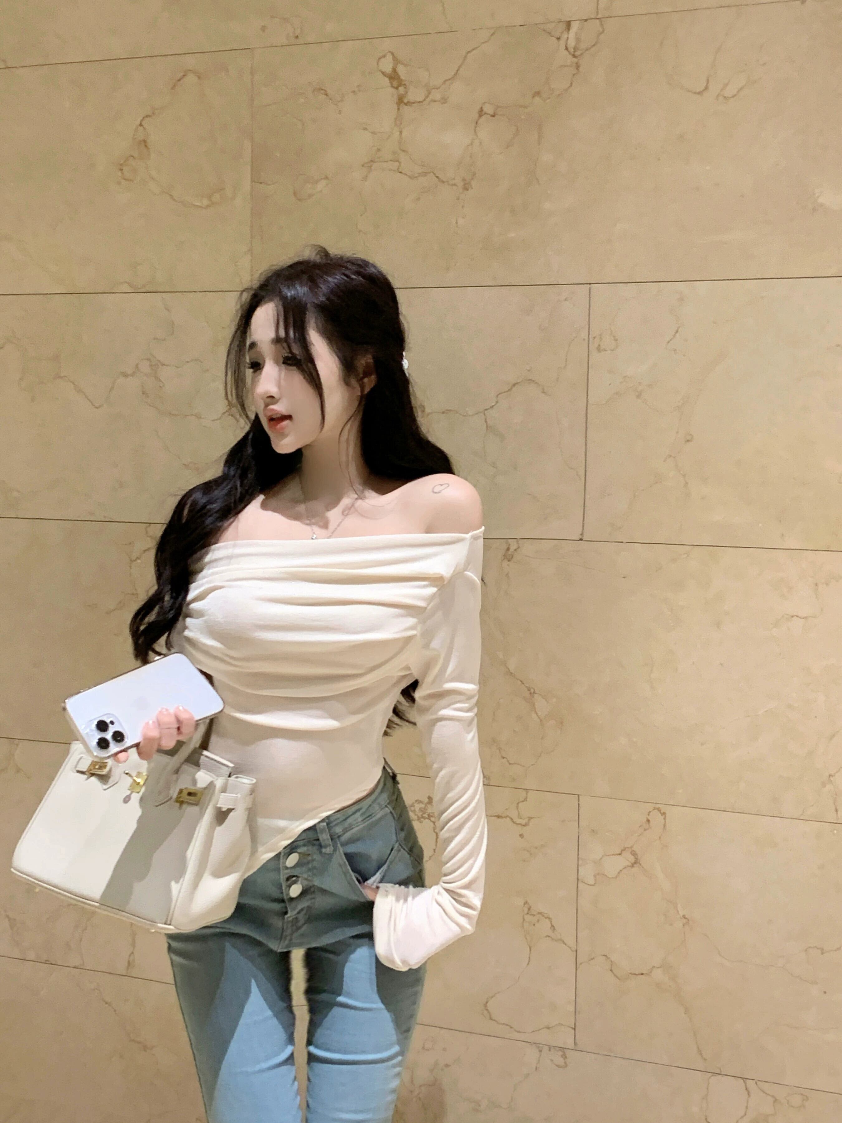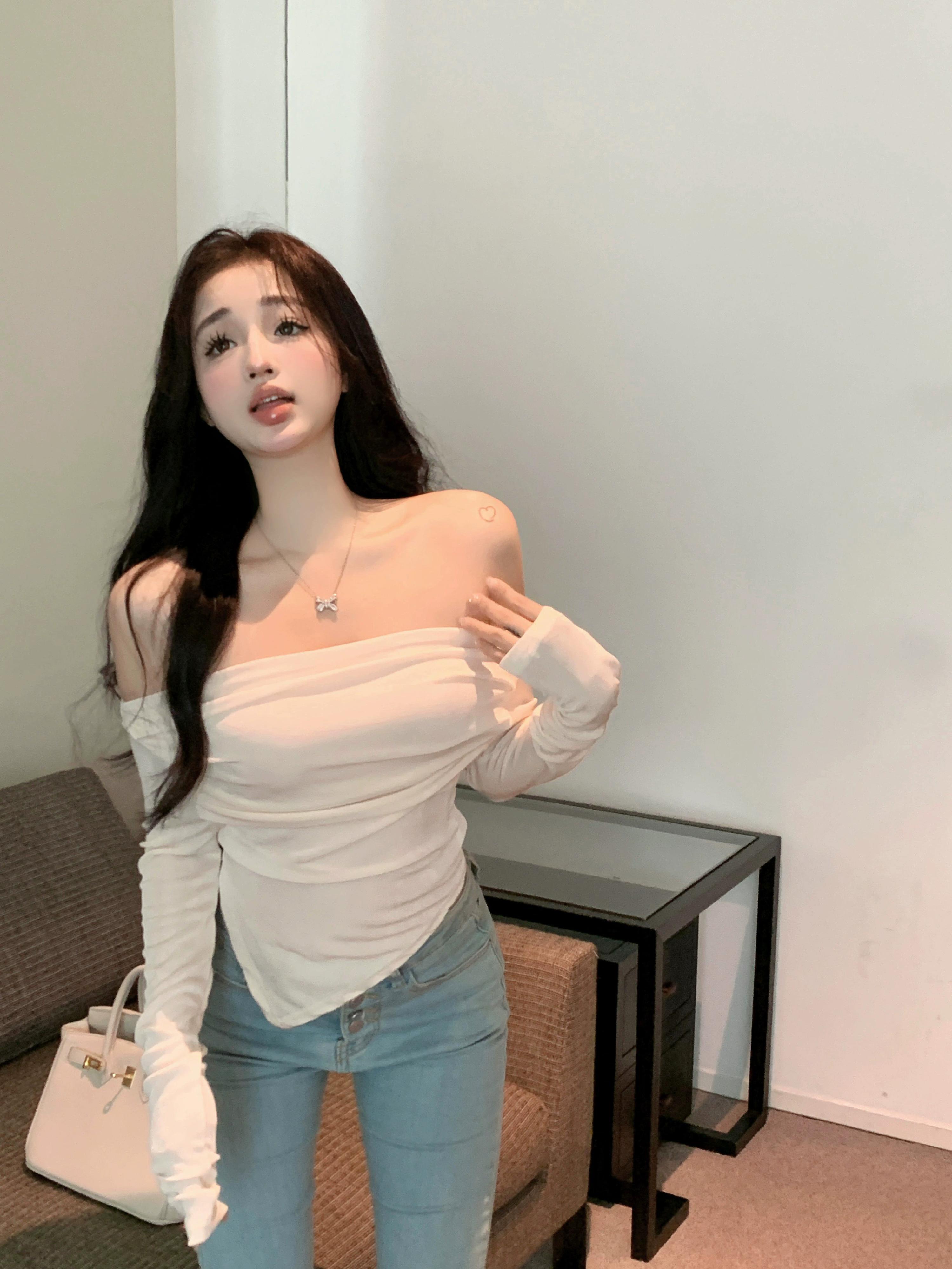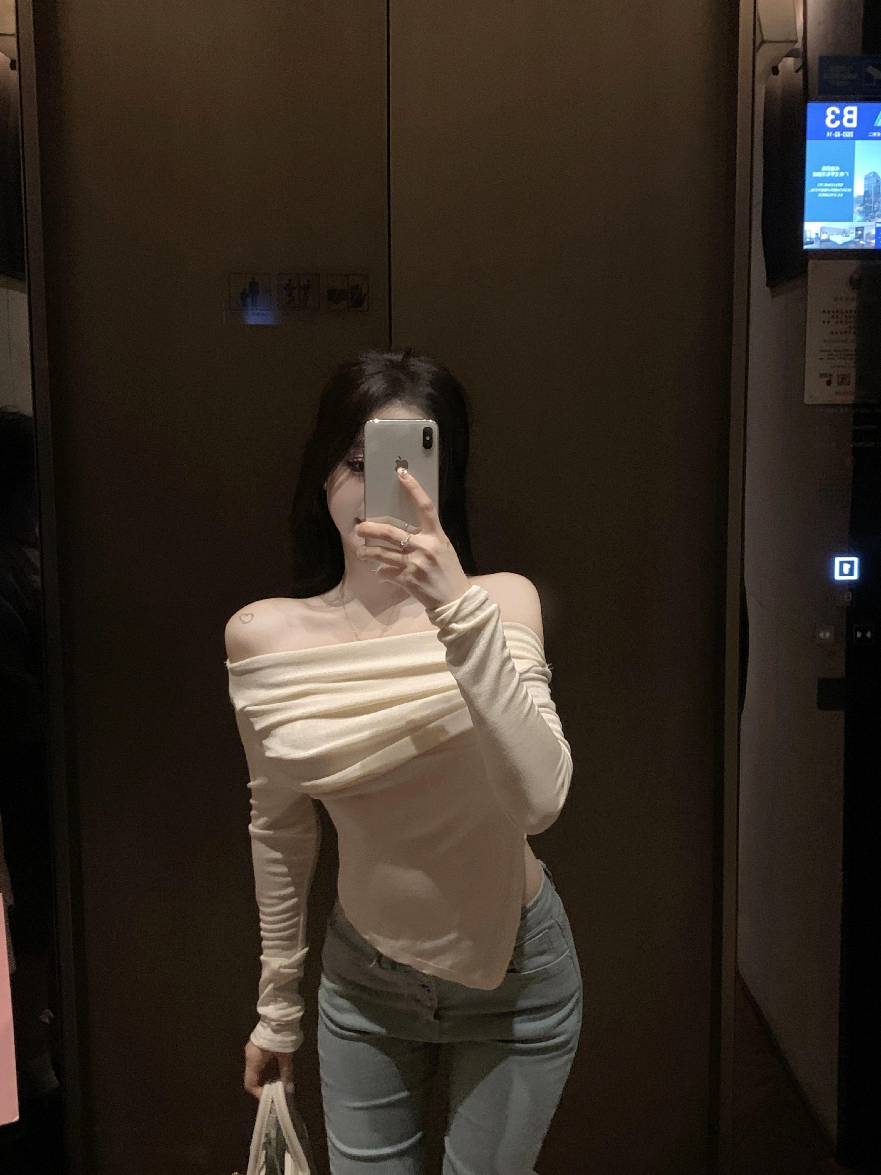 ピュアディザイアワンラインカラー長袖Tシャツレディース秋タイトフィットボトシャツオフショルダーイレギュラーヘムニットトップス ロング オータム 秋物 bstraw95977045793 | beaute25