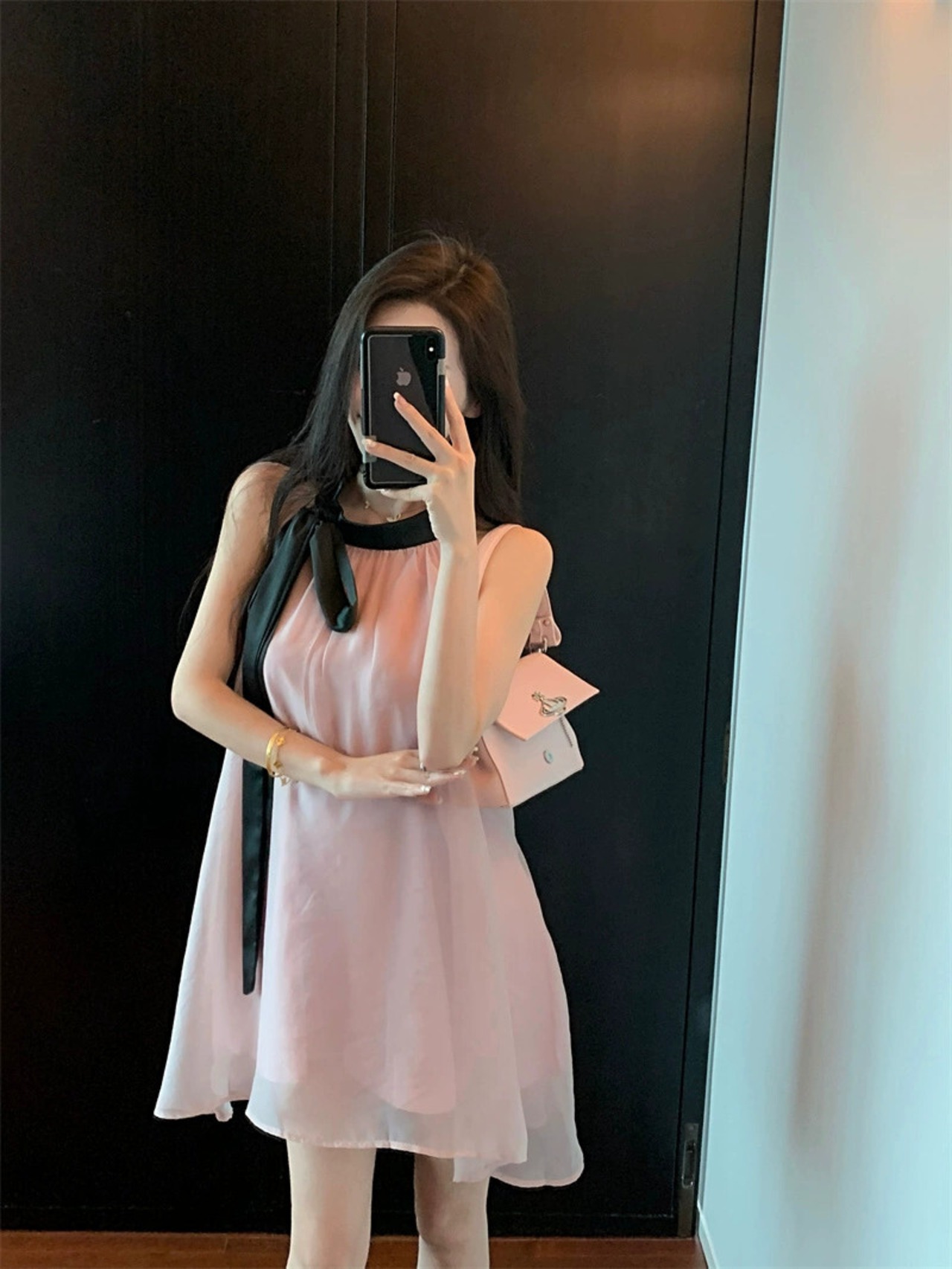 色:ピンクと黒のレースアップ