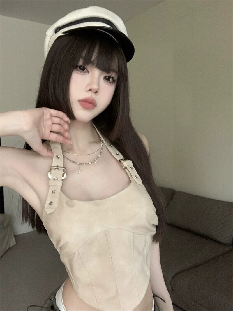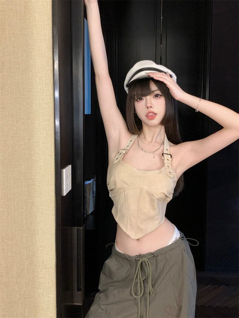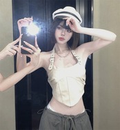 ホットフィッシュボーンホルターネックキャミソール女性の夏甘くてクールなアメリカンスタイルの背中の開いたアウターウェアデザインセクシーなショートトップ 大人ガーリー スウィート キュート カジュアル サマー 夏物 bstraw78737814770 | beaute25