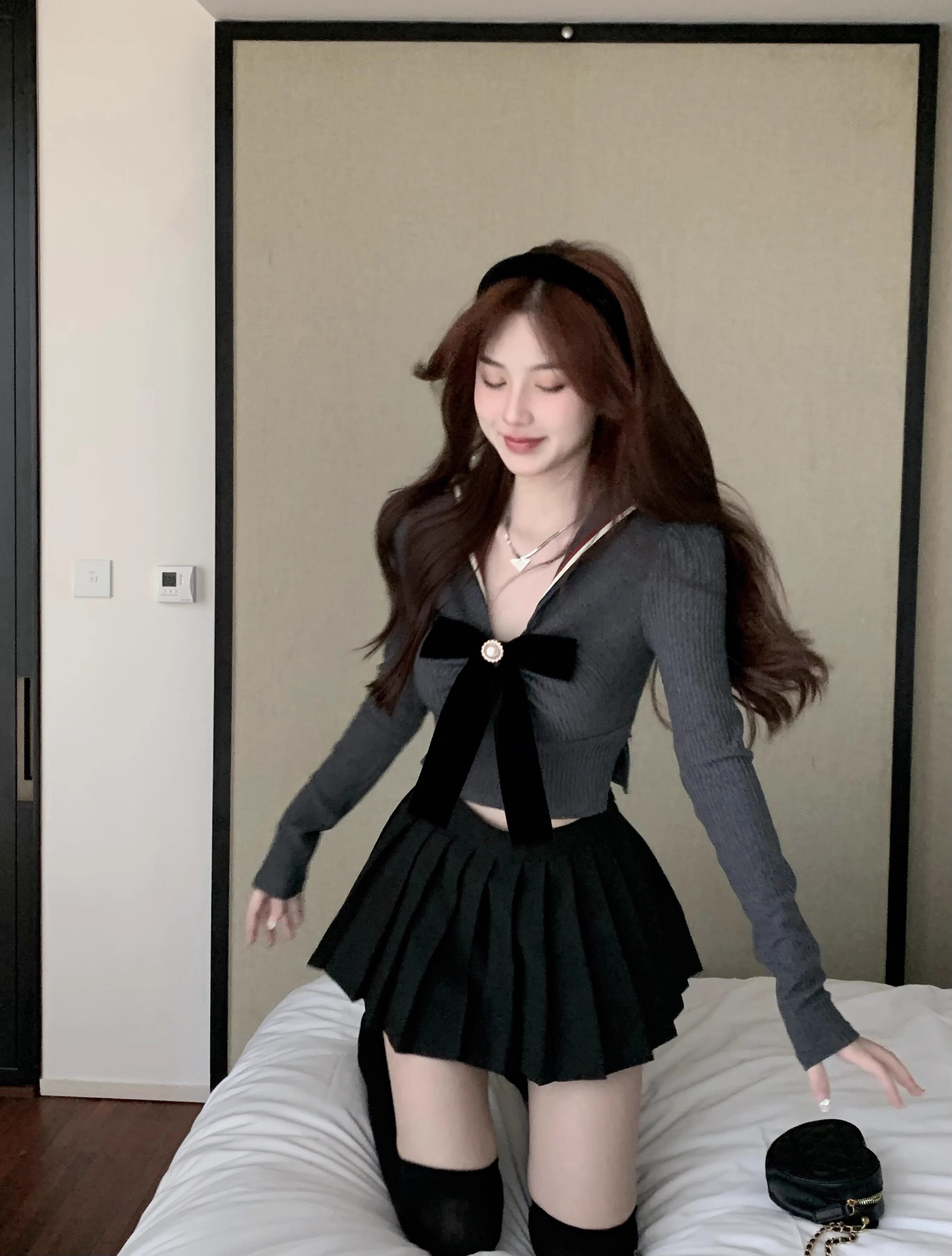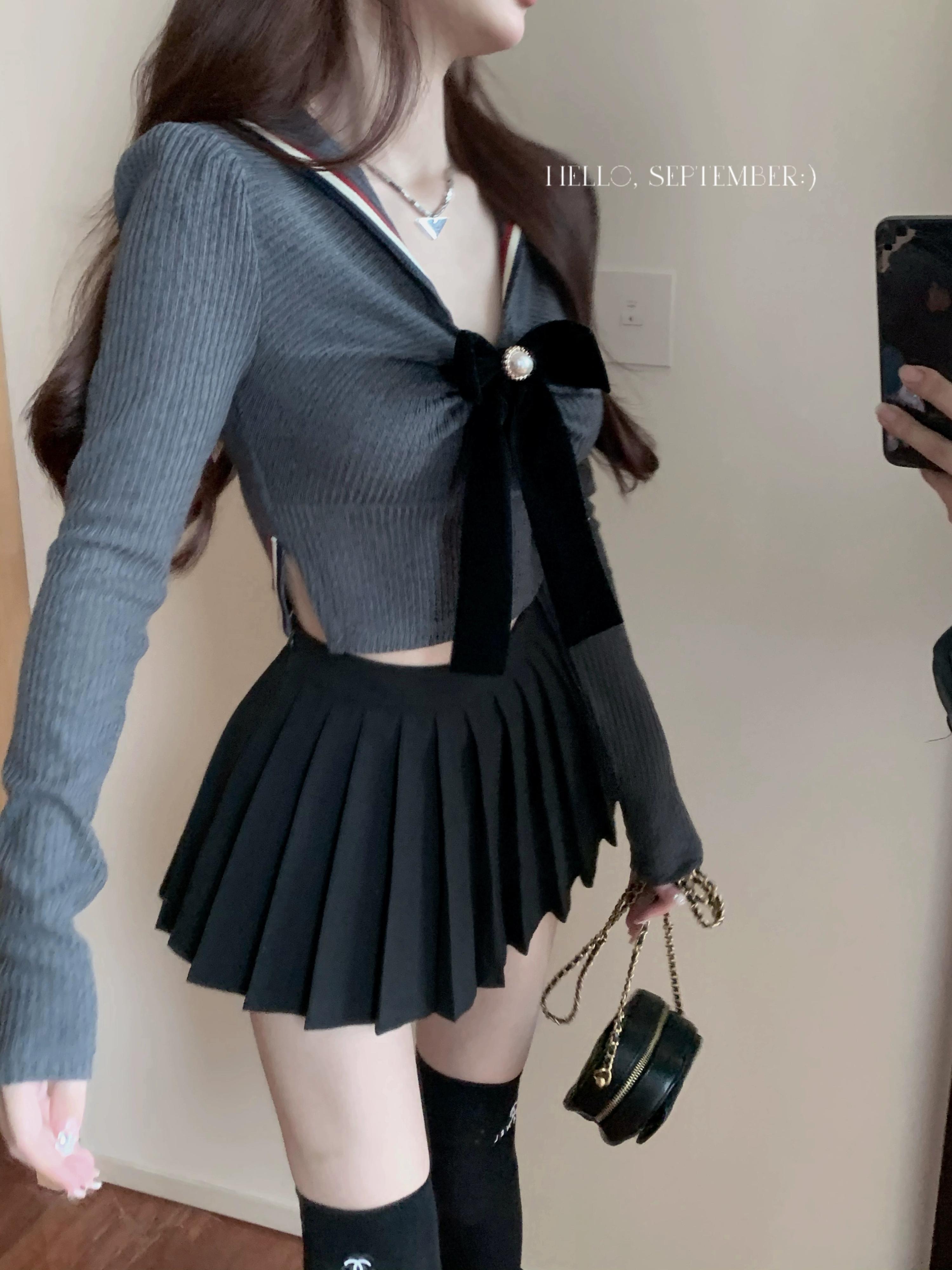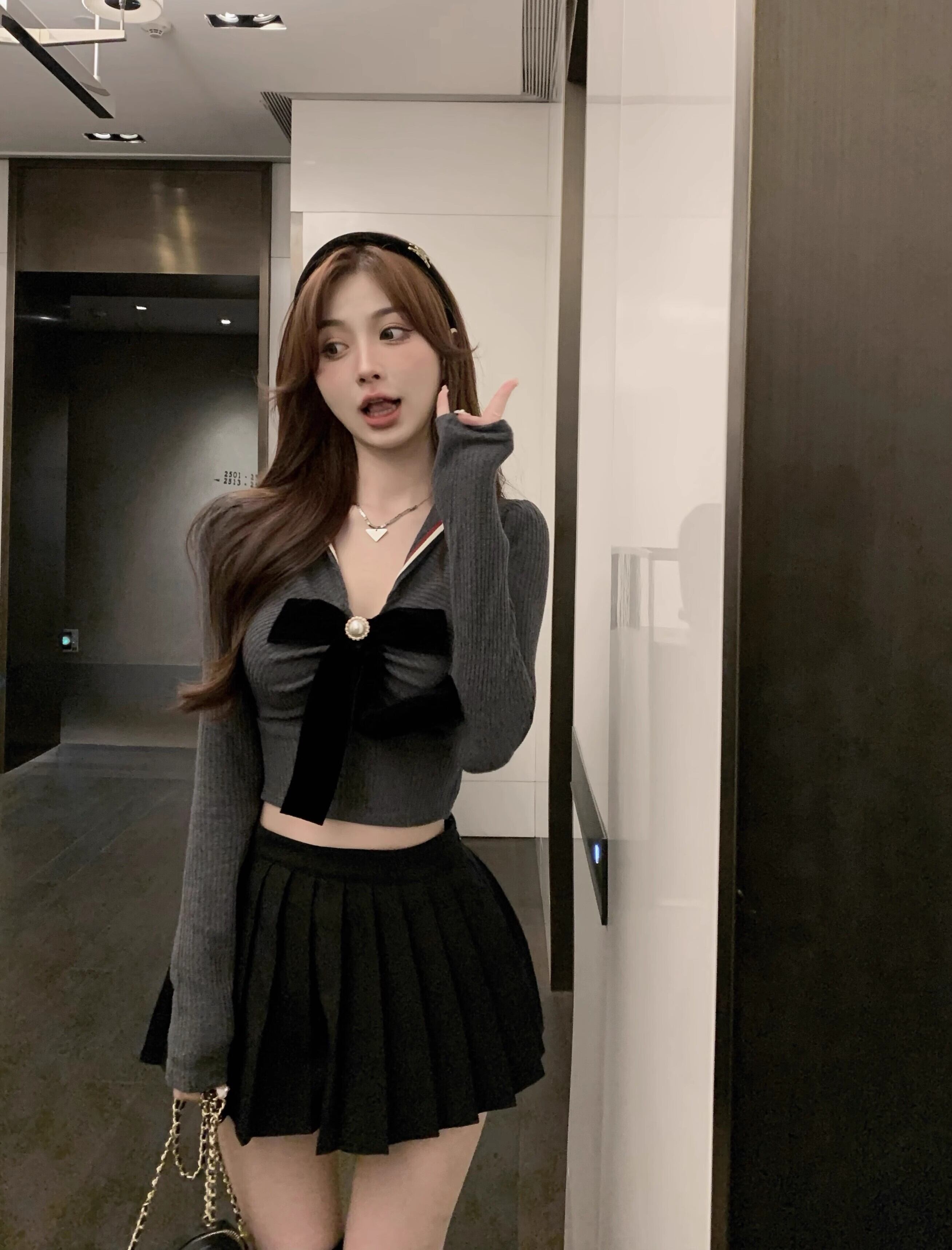 スタイルネイビーカラーニットボトムシャツレディース秋、スリムフィットショート長袖セータートップ甘い ロング 大人ガーリー スウィート キュート カジュアル オータム 秋物 bstraw96637385445 | beaute25