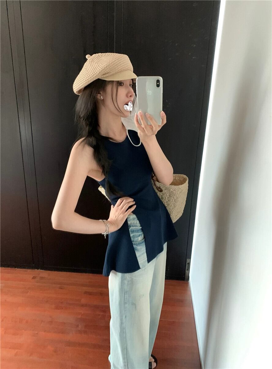 キャミソールベストレディースサマーアウターデザイン、ニッチな純粋な欲望スタイル、ウエストスリム、スリット、スリムフィットノースリーブトップ 夏物 ピュア bstraw98308531521 | beaute25