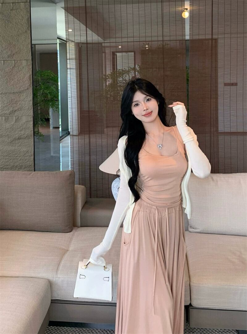 甘くて優しいスーツ長袖日焼け止めカーディガンキャミソールレディース夏ハイウエスト巾着カジュアルパンツ3点セット ロング 大人ガーリー スウィート キュート サマー 夏物 bstraw39758154726 | beaute25