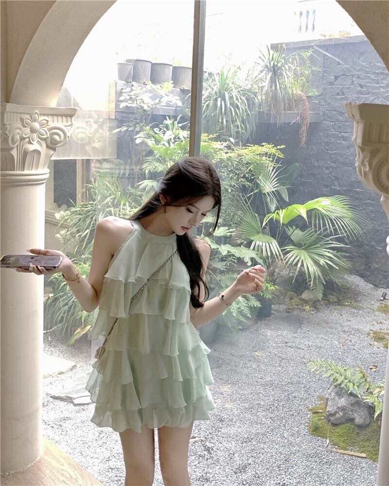夏のフランスのホルターネックドレスの女性、純粋な貪欲なスタイル、セクシーな気質、シフォンノースリーブスカート、フリルケーキスカート サマー 夏物 ピュア bstraw6437792652 | beaute25