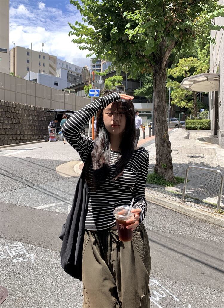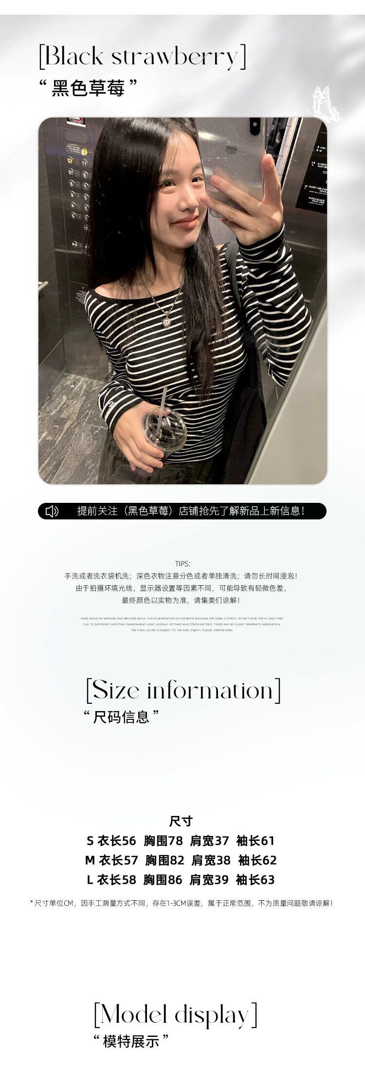 ストライプ長袖インナー Tシャツ女性秋 2023 新しい甘くてクールなスリムボトムシャツセクシーな背中の開いたトップ ロング 大人ガーリー スウィート キュート カジュアル オータム 秋物 bstraw81366348417 | beaute25