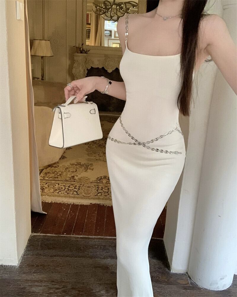 チェーンサスペンダードレスレディース、夏のハイエンドスリットロングスカート、純粋な欲望スタイルのヒップハグスカート、セクシーなイブニングドレススカート サマー 夏物 ピュア bstraw54781554597 | beaute25