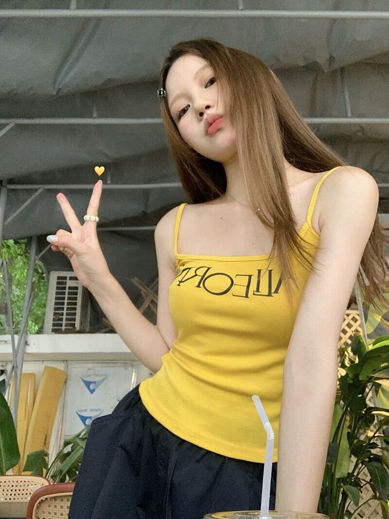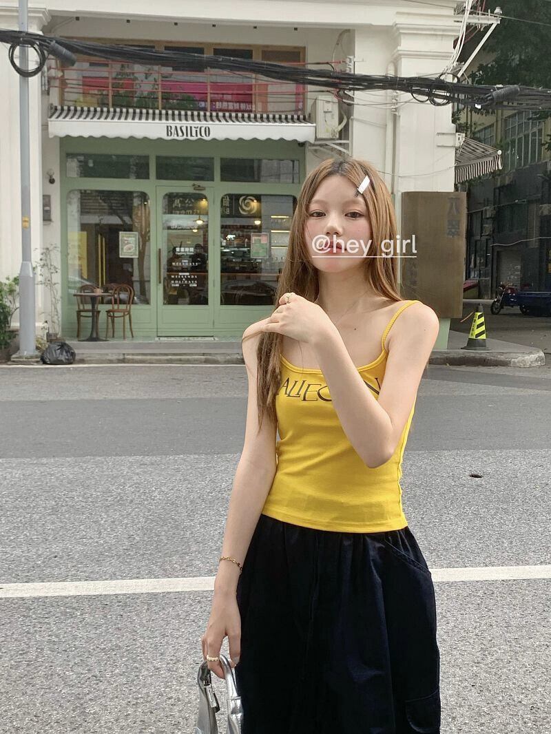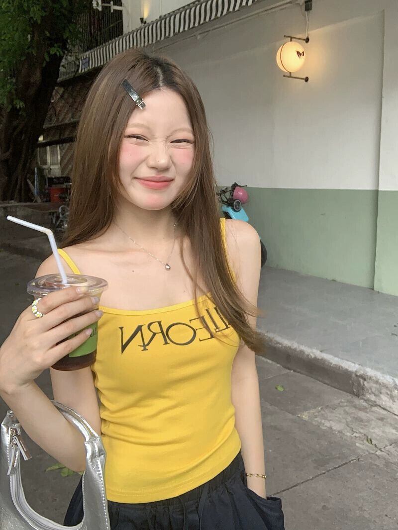 黄色の文字キャミソール女性の夏甘いネクタイ背中の開いたセクシーなインナーウェアショートボトシャツトップアウターウェア 大人ガーリー スウィート キュート カジュアル サマー 夏物 bstraw3477196368 | beaute25