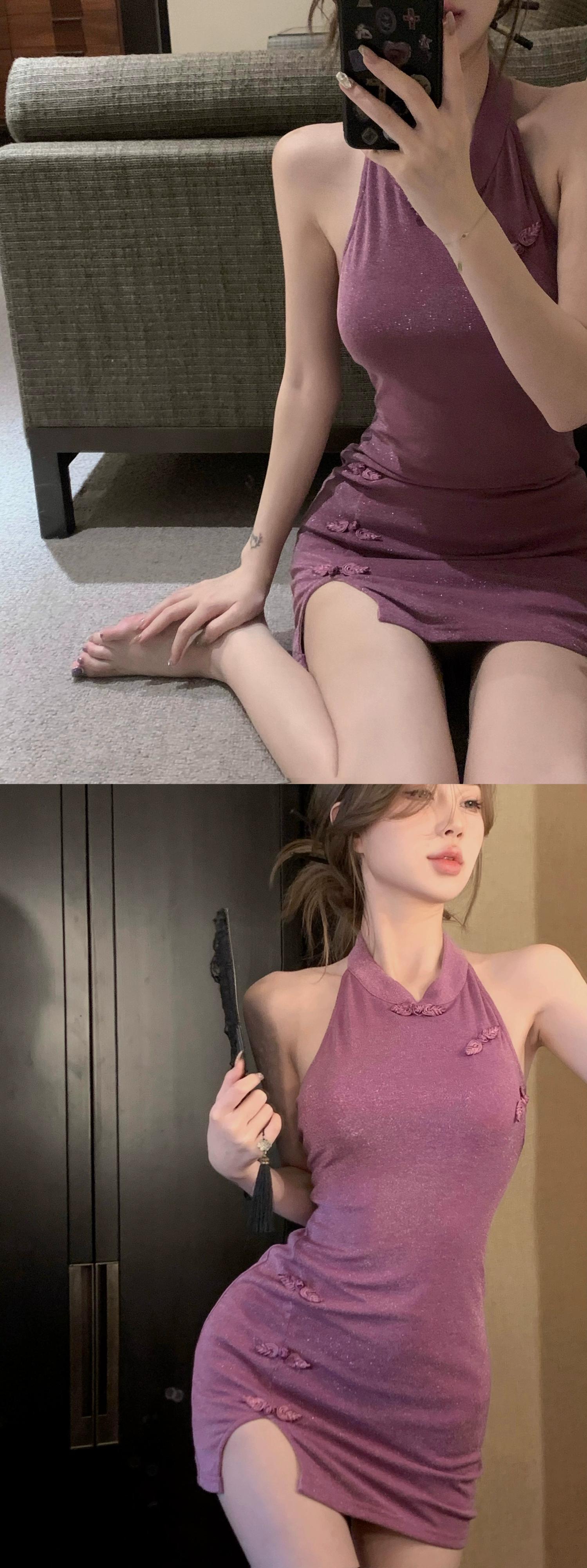 中国風の改良された夏のチャイナドレス女性、純粋な欲望のスタイル、セクシーなヒップハグショートスカート、ウエストレスバックレスホルターネックスカート サマー 夏物 ピュア bstraw2567389287 | beaute25