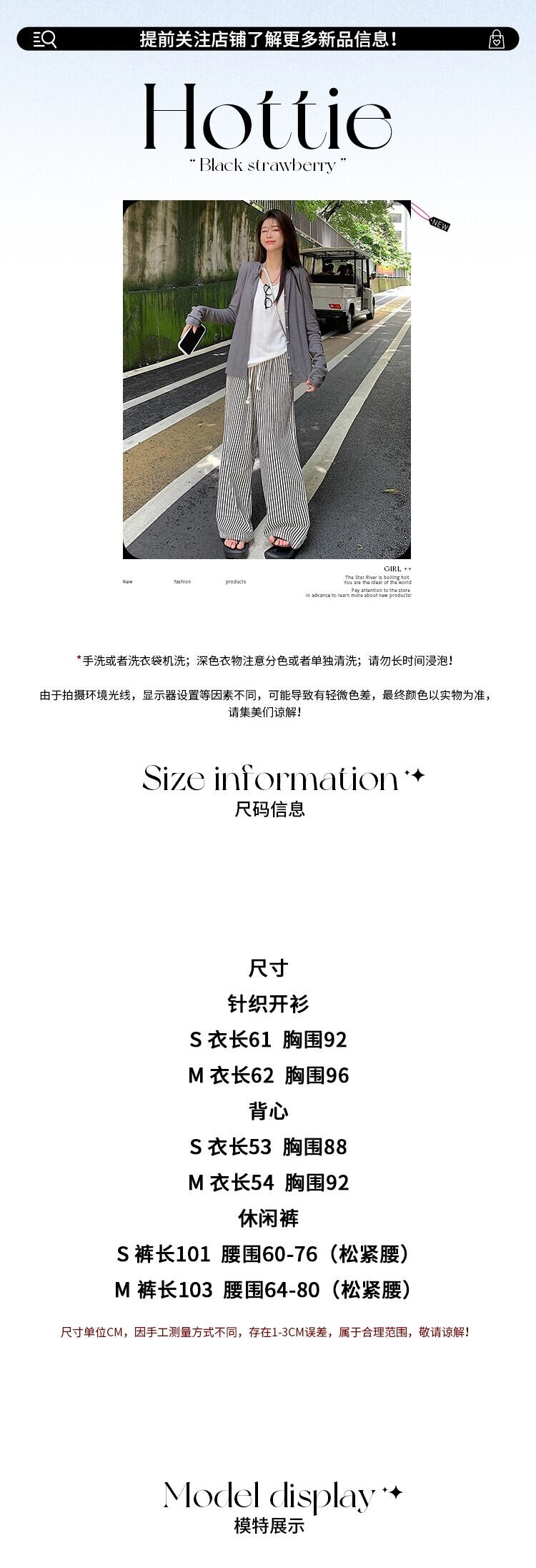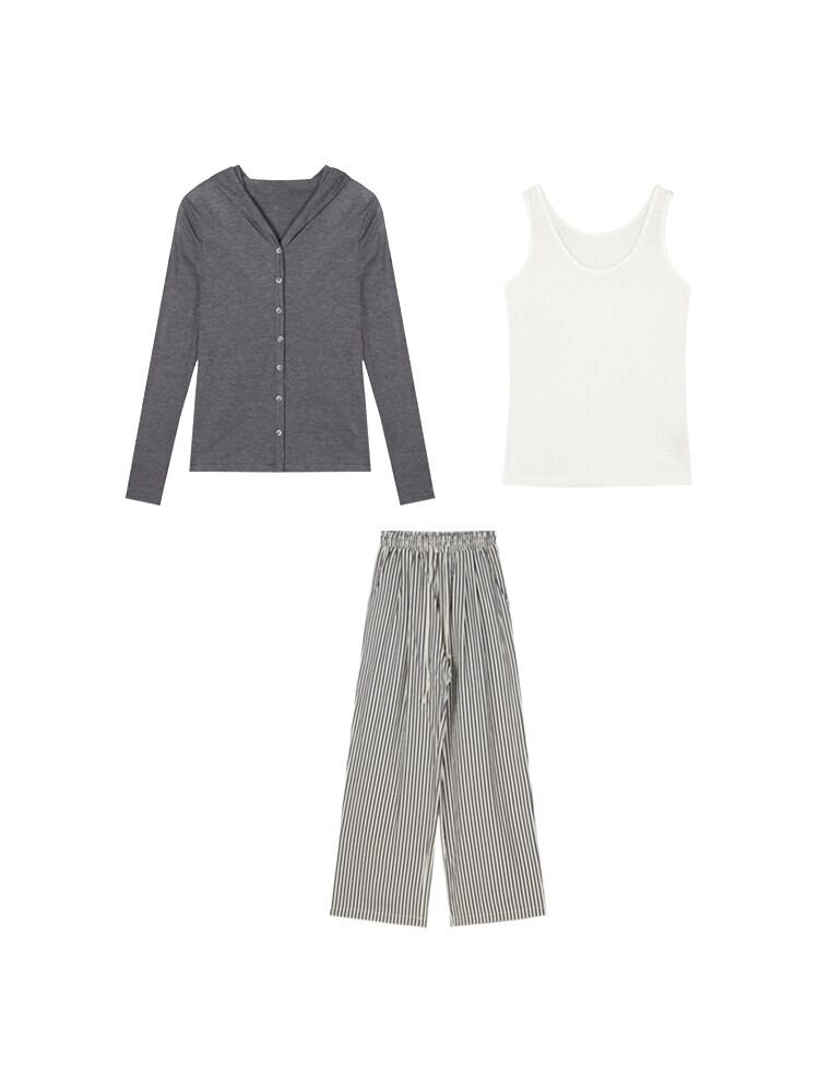 フード付きニットカーディガン長袖トップスレディース秋スーツ白Tシャツベスト縦縞カジュアルパンツ3点セット ロング ホワイト オータム 秋物 ストライプ bstraw81258602732 | beaute25