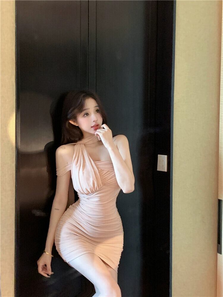 アプリコットプリーツドレスの女性の夏の純粋な欲望ネクタイオフショルダースカートウエスト痩身気質セクシーなヒップカバーショートスカート サマー 夏物 ピュア bstraw48239823126 | beaute25