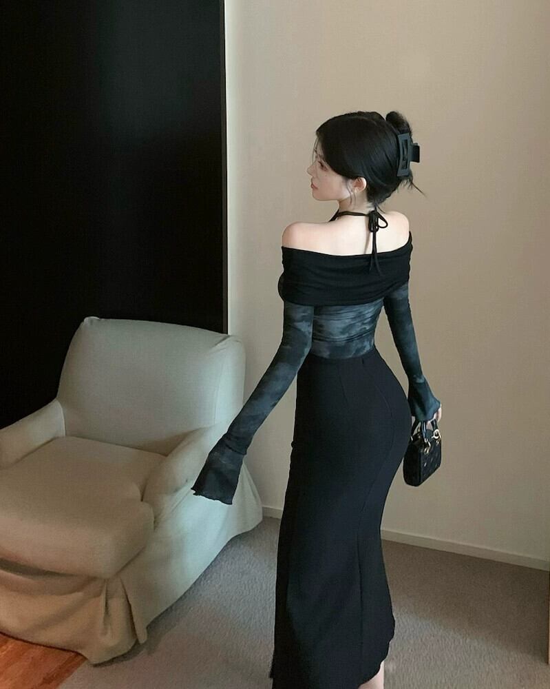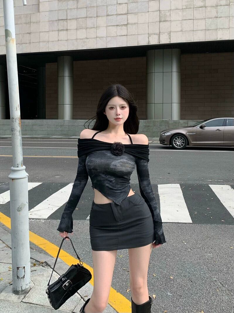気質のホルターネック、バックレス、ワンショルダー T シャツの女性、秋のアウターウェア、スリムフィットの短い不規則なウエストのトランペット スリーブ トップ ショート オータム 秋物 Tシャツ bstraw84633813674 | beaute25