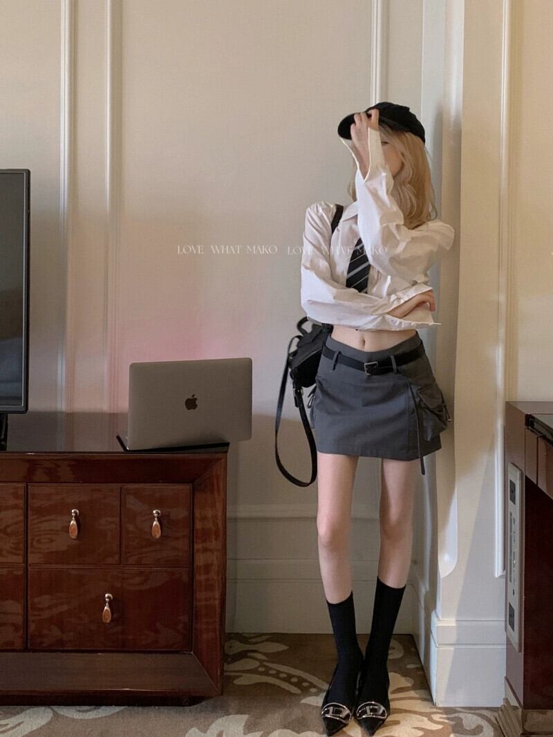 色:ネクタイ付きシャツ,ベルト付きワークスカート