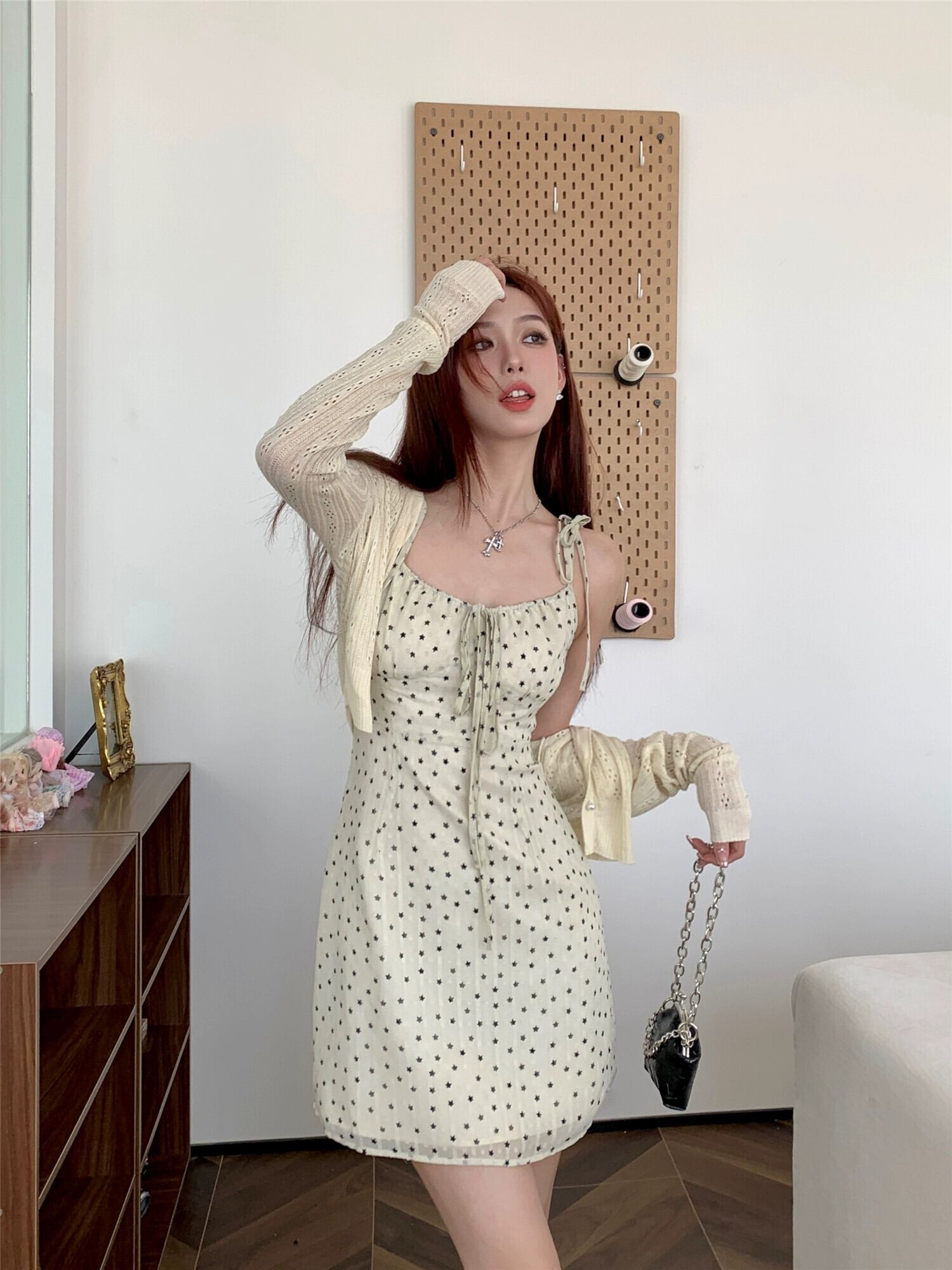 甘いネクタイスターサスペンダードレス女性の夏の純粋な欲望スタイルスカート気質セクシーなレースアップウエストカバーヒップショートスカート 大人ガーリー スウィート キュート カジュアル サマー 夏物 ピュア bstraw57671197385 | beaute25