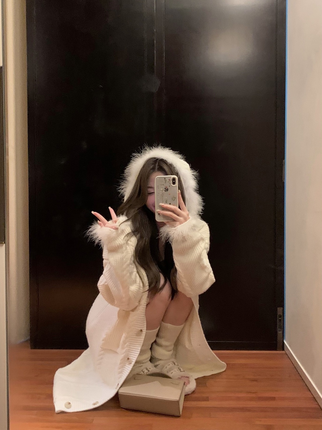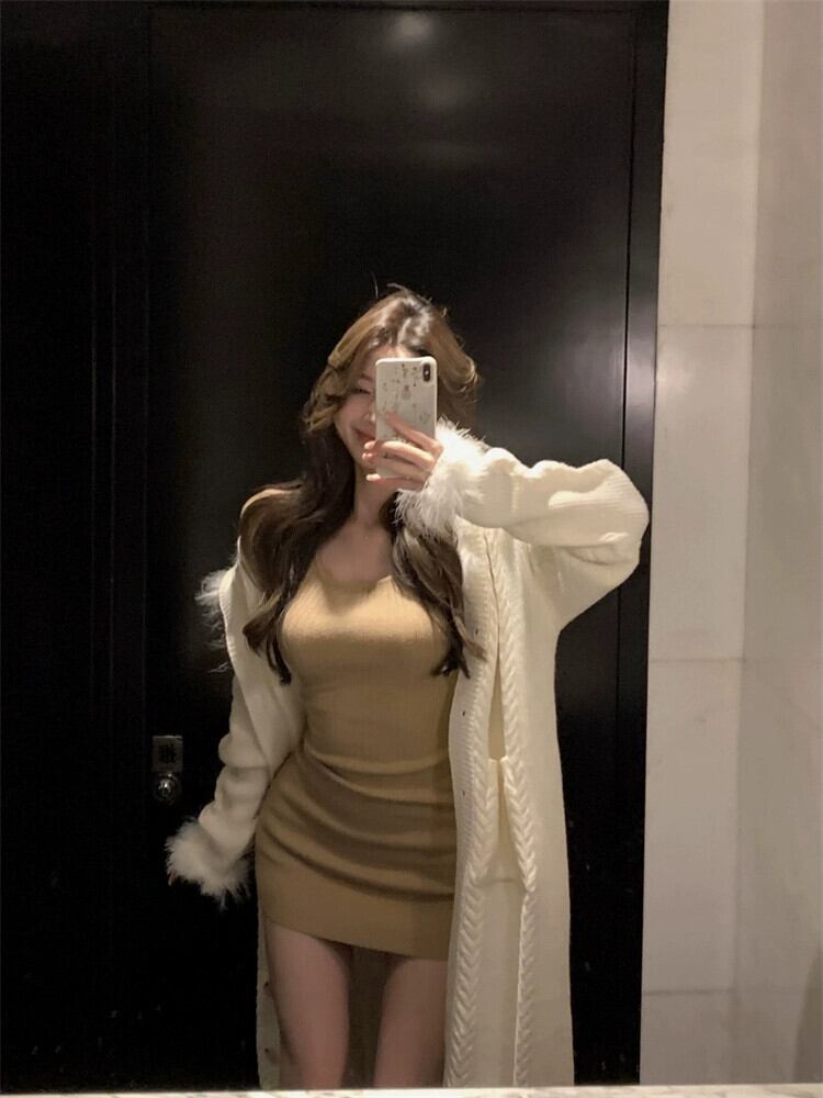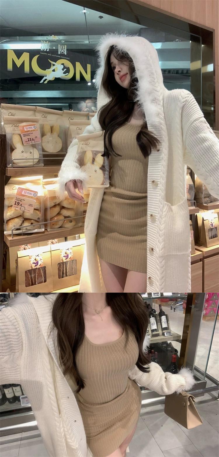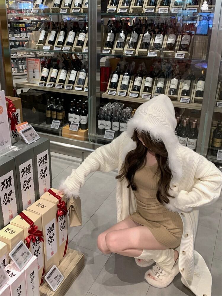 白長袖フード付きセータージャケット女性秋毛皮のようなパッチワーク怠惰なスタイルニットカーディガンミッドレングストップ ロング ホワイト オータム 秋物 bstraw75615949000 | beaute25