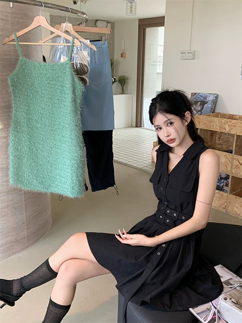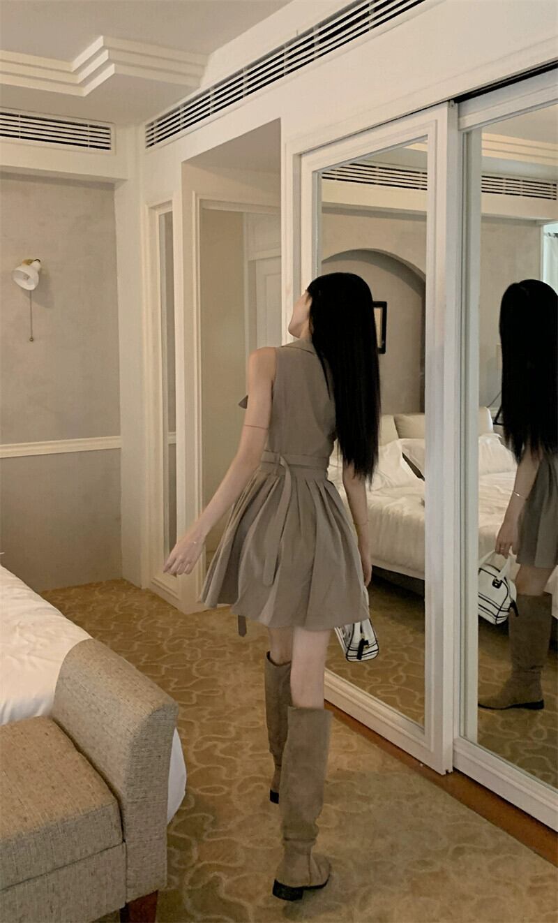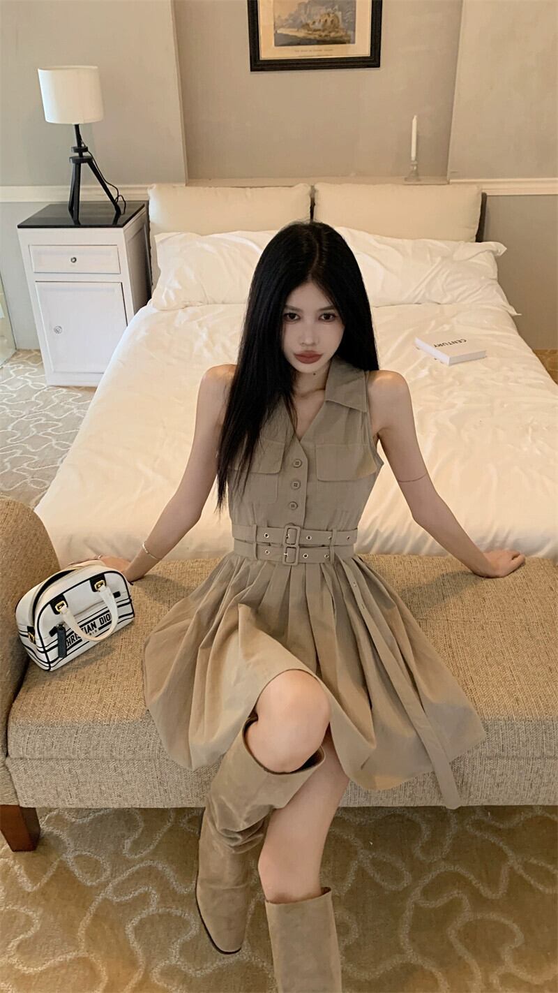 レトロスイートガールノースリーブベストドレスレディース夏の気質 - スカートウエストプリーツAラインスカート 大人ガーリー スウィート キュート カジュアル サマー 夏物 bstraw13510206837 | beaute25