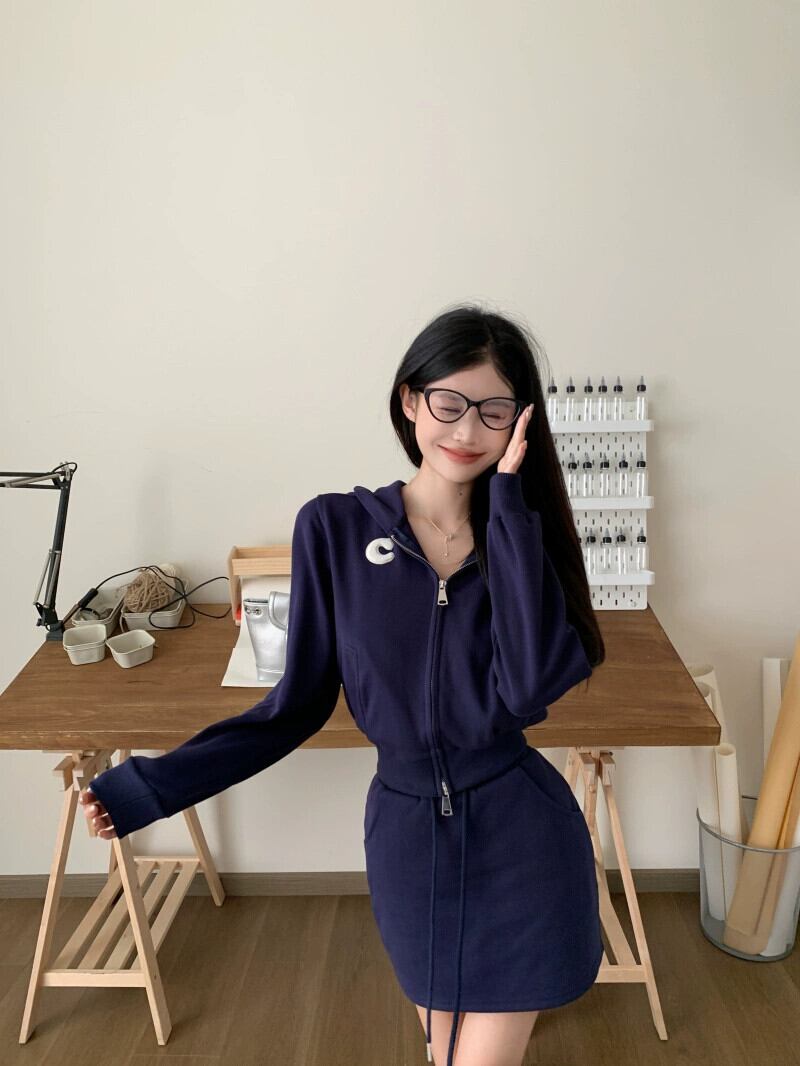 スタイル気質カジュアルスポーツスーツ女性のフード付きカーディガンコートトレーナー秋ハイウエスト A ラインスカート 2 点セット オータム 秋物 Aライン bstraw81103332806 | beaute25