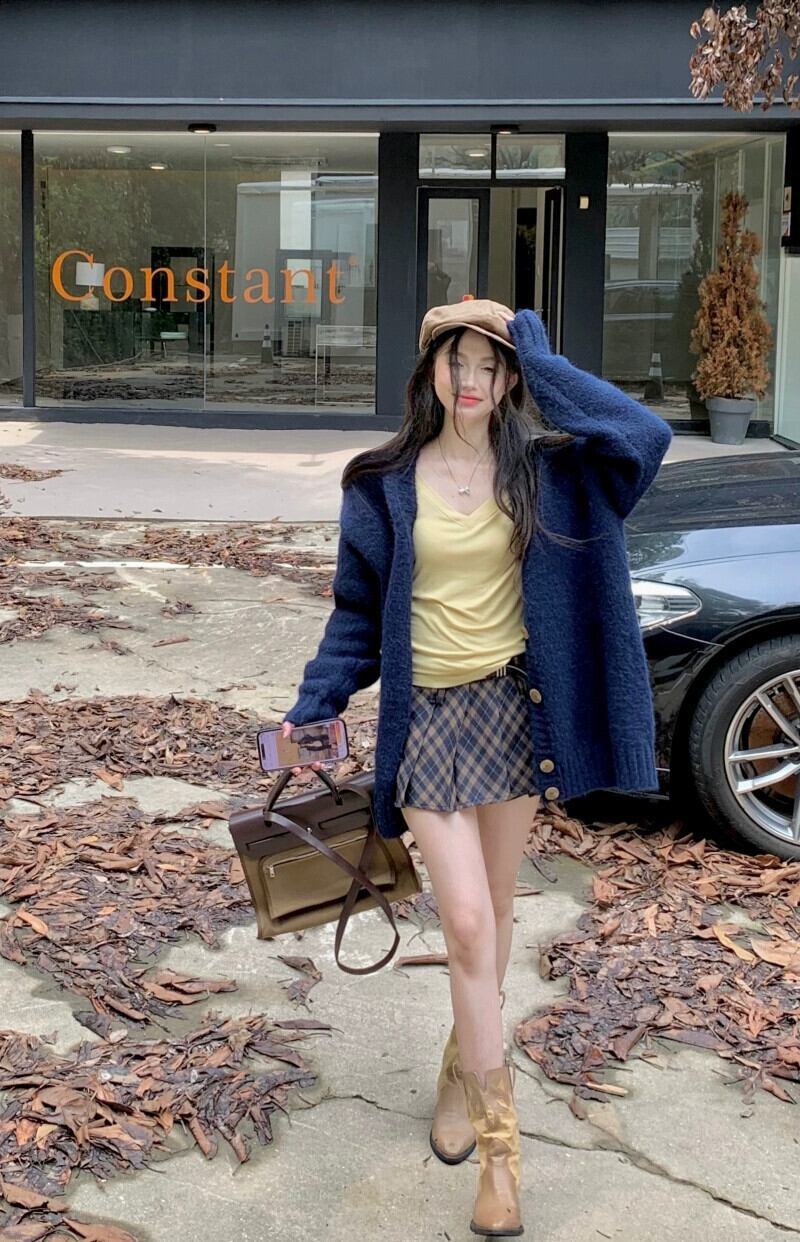 色:ロイヤルブルーコート,チェック柄プリーツスカート,イエローT
