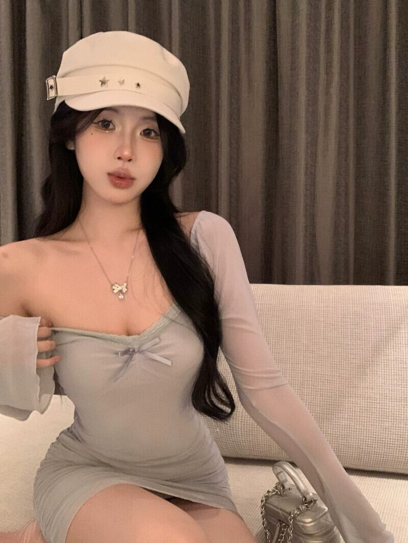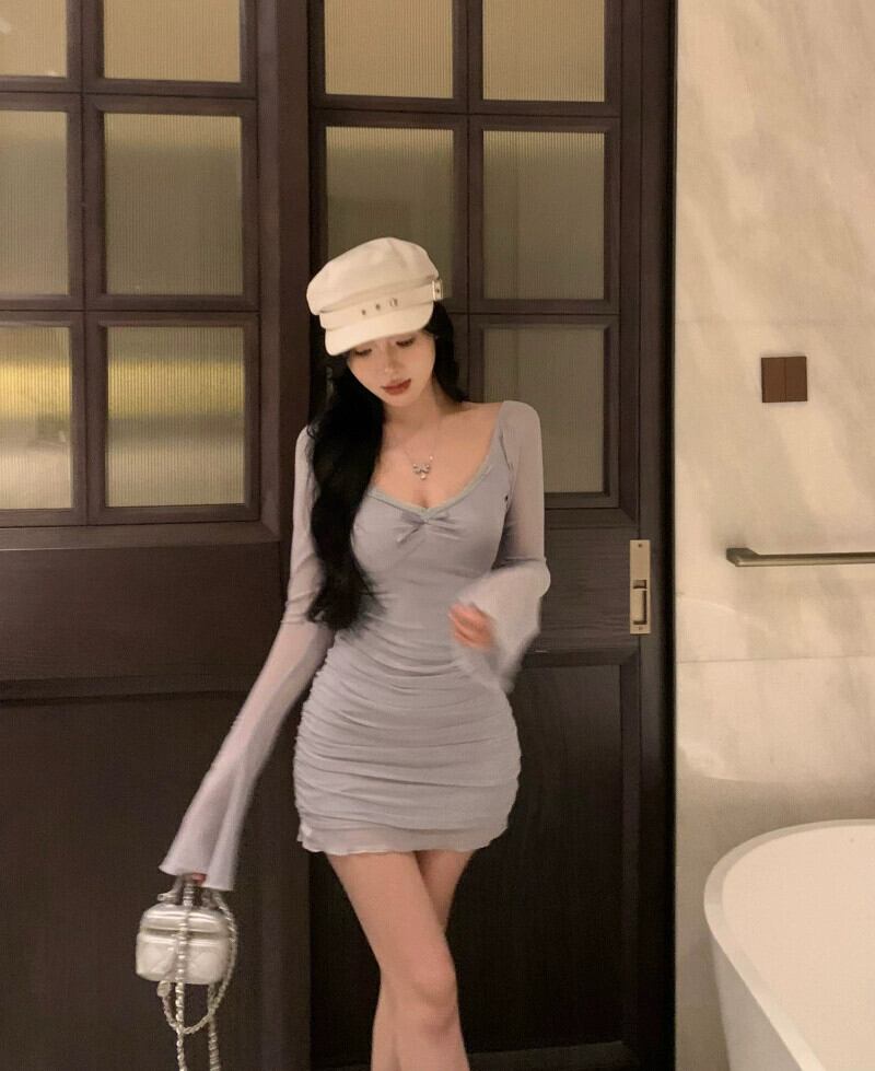 Pure Desire セクシーなメッシュ V ネックドレス女性の初秋のリボンスリムフィットウエスト長袖プリーツヒップショートスカート ロング オータム 秋物 Vネック bstraw32573331623 | beaute25