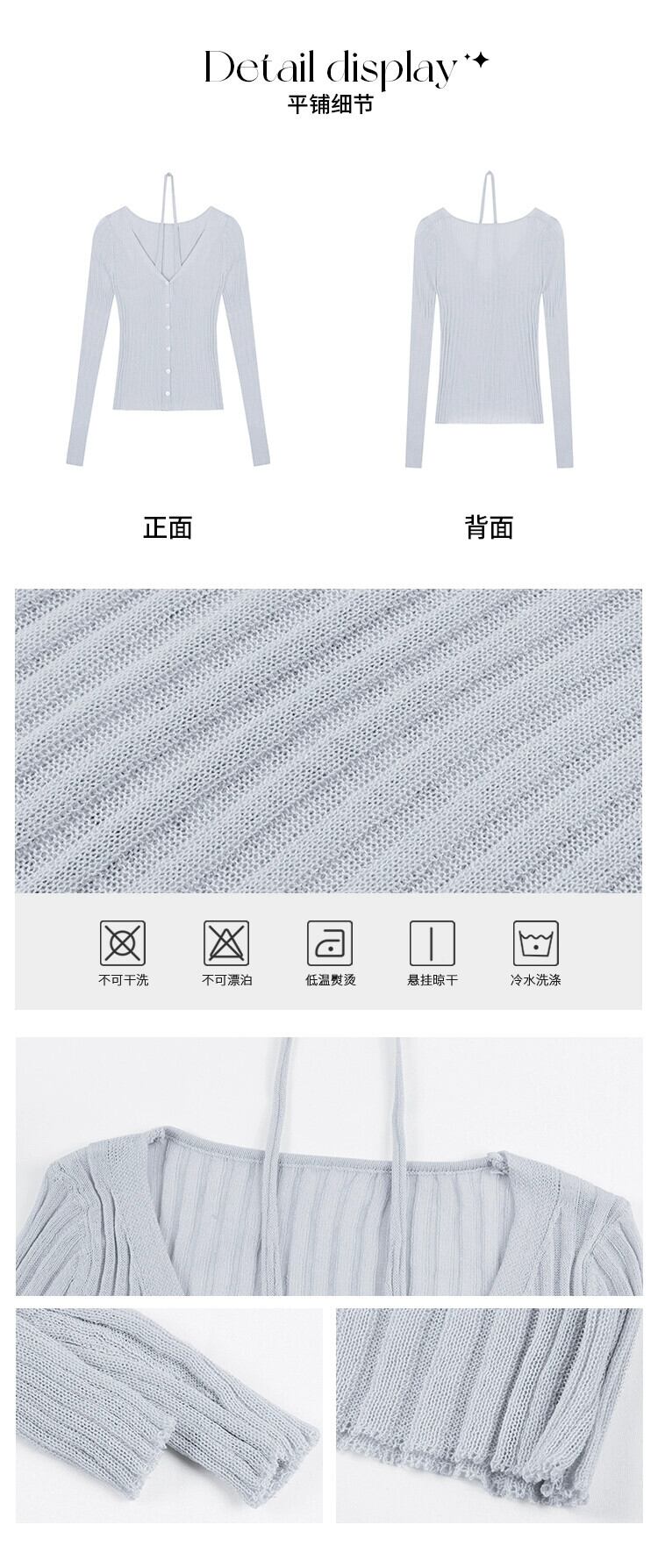 ピンクの V ネック長袖ニット日焼け止めシャツ女性秋の甘いネクタイスリムフィット薄いアイスシルクフェイクツーピースカーディガントップ ロング 大人ガーリー スウィート キュート カジュアル オータム 秋物 Vネック bstraw45066882520 | beaute25